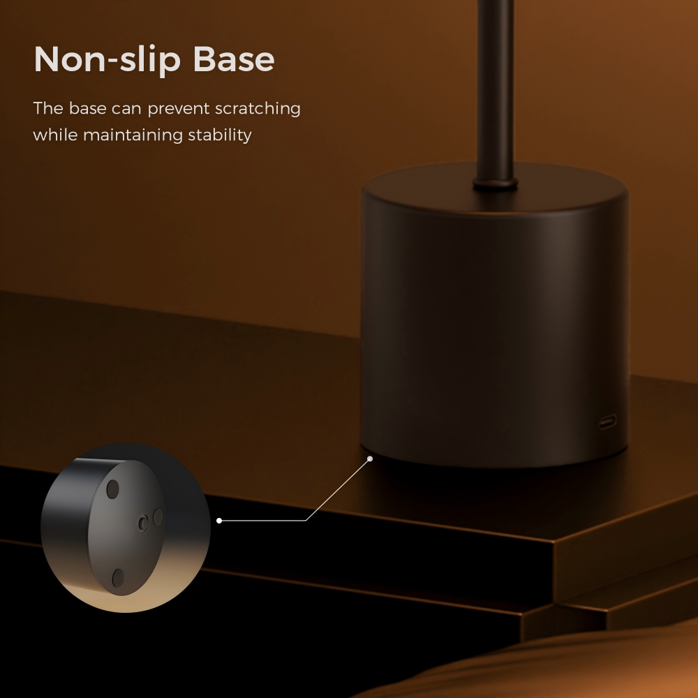 Med upp till 12 timmars batteritid efter full laddning via USB kan lampan placeras var som helst – utan att behöva vara bunden till ett eluttag. Den halkfria basen gör att den står stadigt på bordet eller nattduksbordet. Den har även en bra ljuskvalitet som återger färger naturligt, vilket gör den användbar för många olika miljöer och behov.