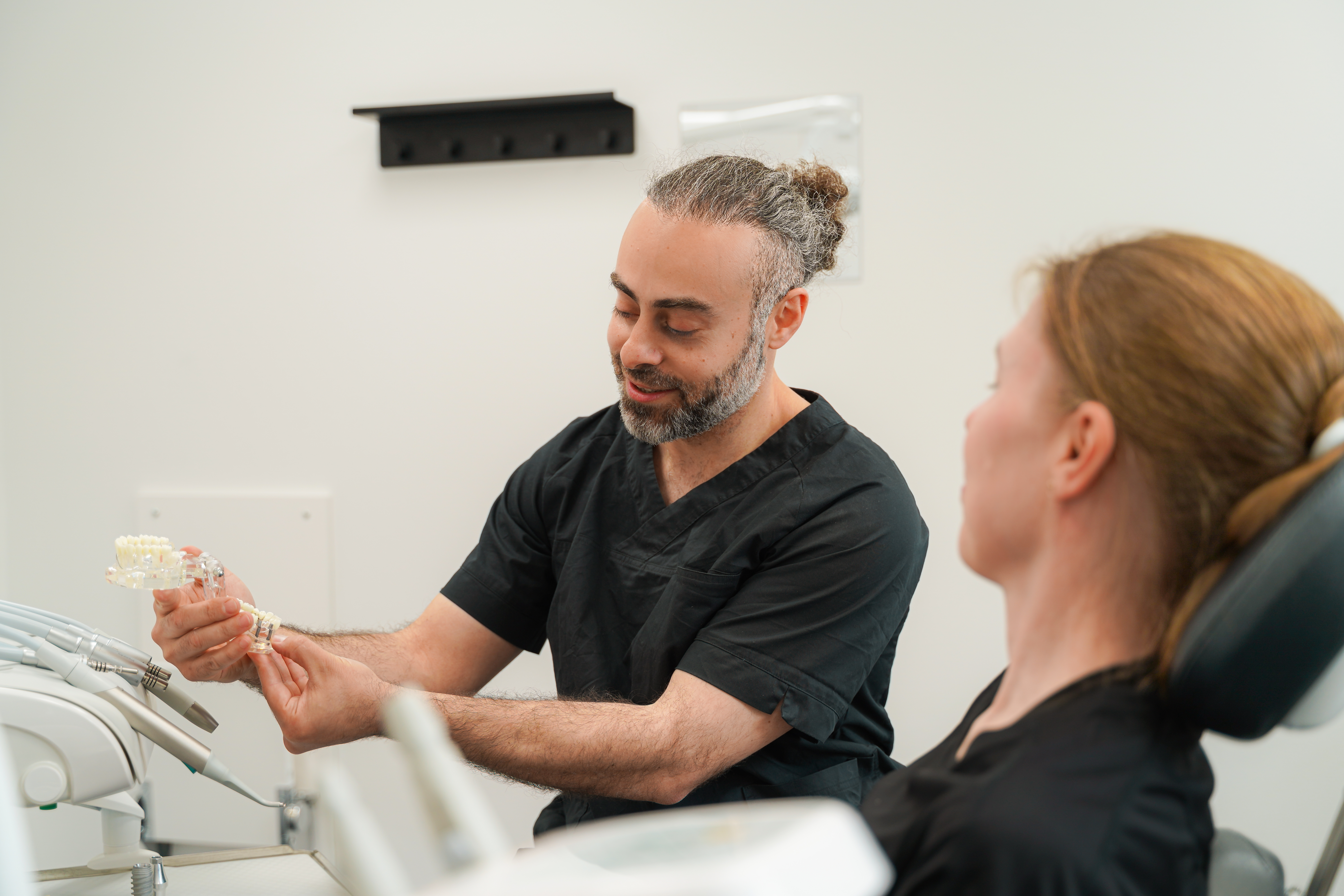 Under konsultationen går tandläkaren noggrant igenom din tandhälsa och bedömer förutsättningarna för implantatbehandling.