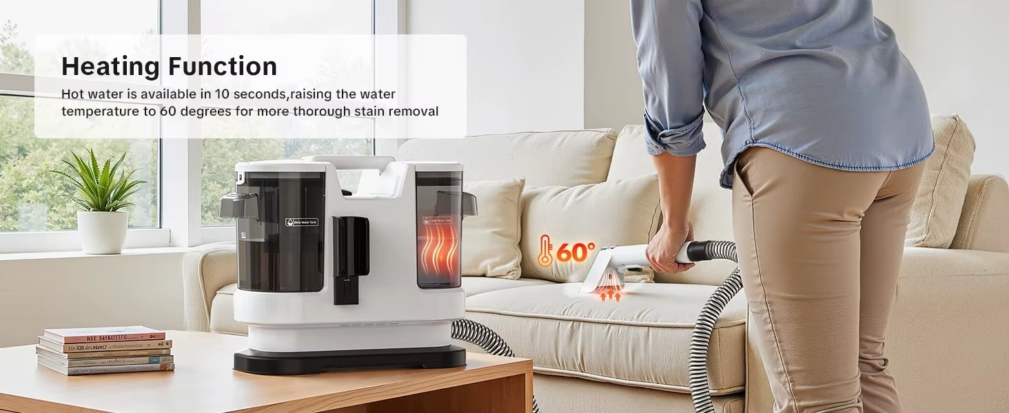 Kallvatten räcker ofta inte mot ingrodd smuts och bakterier. LBLUE V8 har ett 800W snabbvärmesystem och 600W motor som värmer vattnet till 35–60°C på ca 10 sekunder. Det varma vattnet tränger djupt ner i fibrerna, löser upp fett och reducerar luktorsakande bakterier.