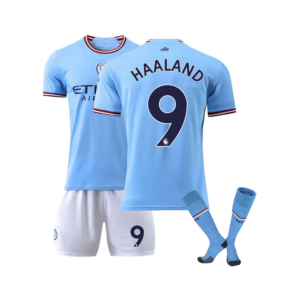 Fotbollströja, fotbollsshorts och strumpor med nummer 9 för barn och vuxna som gillar fotboll. Skön passform, tåligt material och en design som passar lika bra på planen som till vardags.