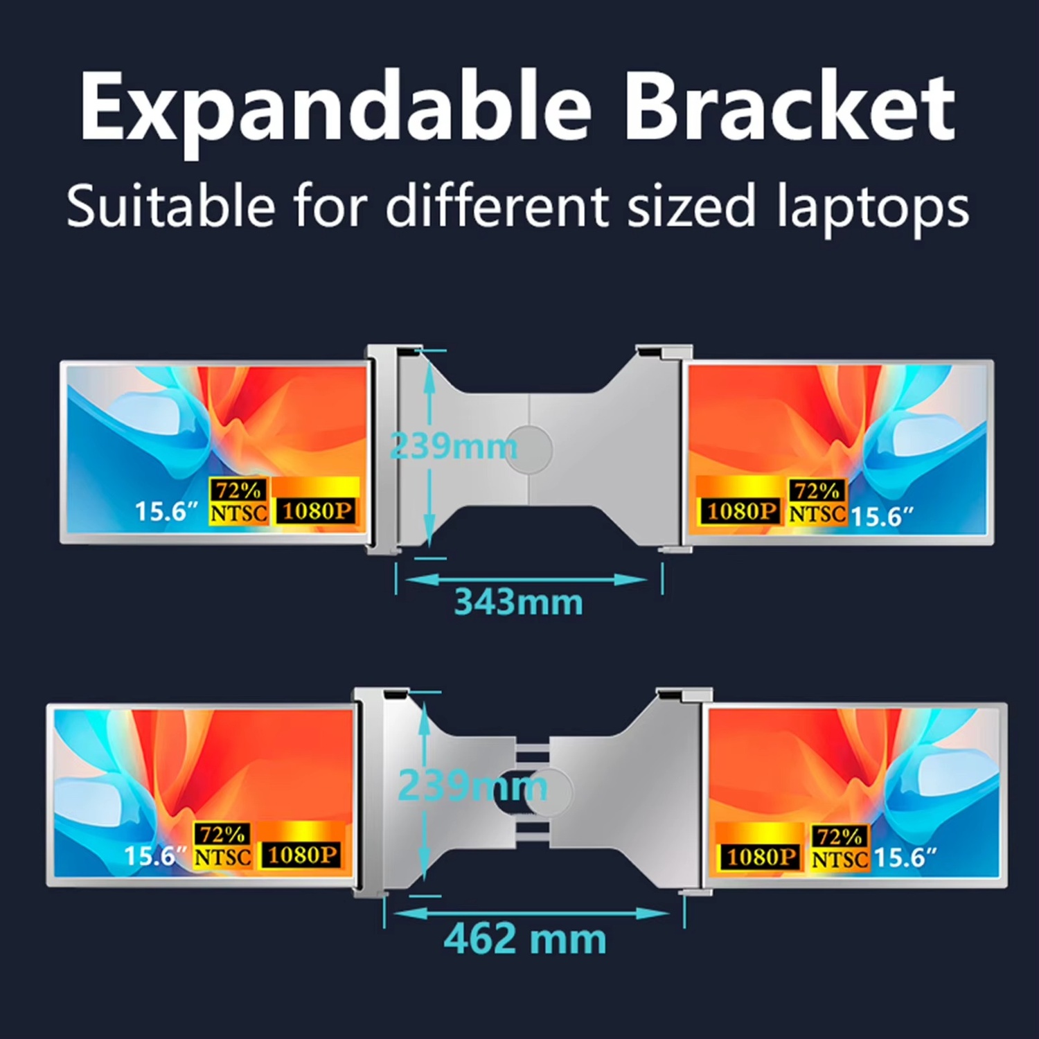 Den flexibla skärmhållaren gör installationen enkel och säker, och den inbyggda justerbara stödfoten ger extra stabilitet. Produkten är kompatibel med laptops mellan 15.6–17.3 tum och med en paneltjocklek på upp till 8,5 mm. Perfekt för dig som behöver multitaska effektivt – från redigering och analys till möten, spel och underhållning.