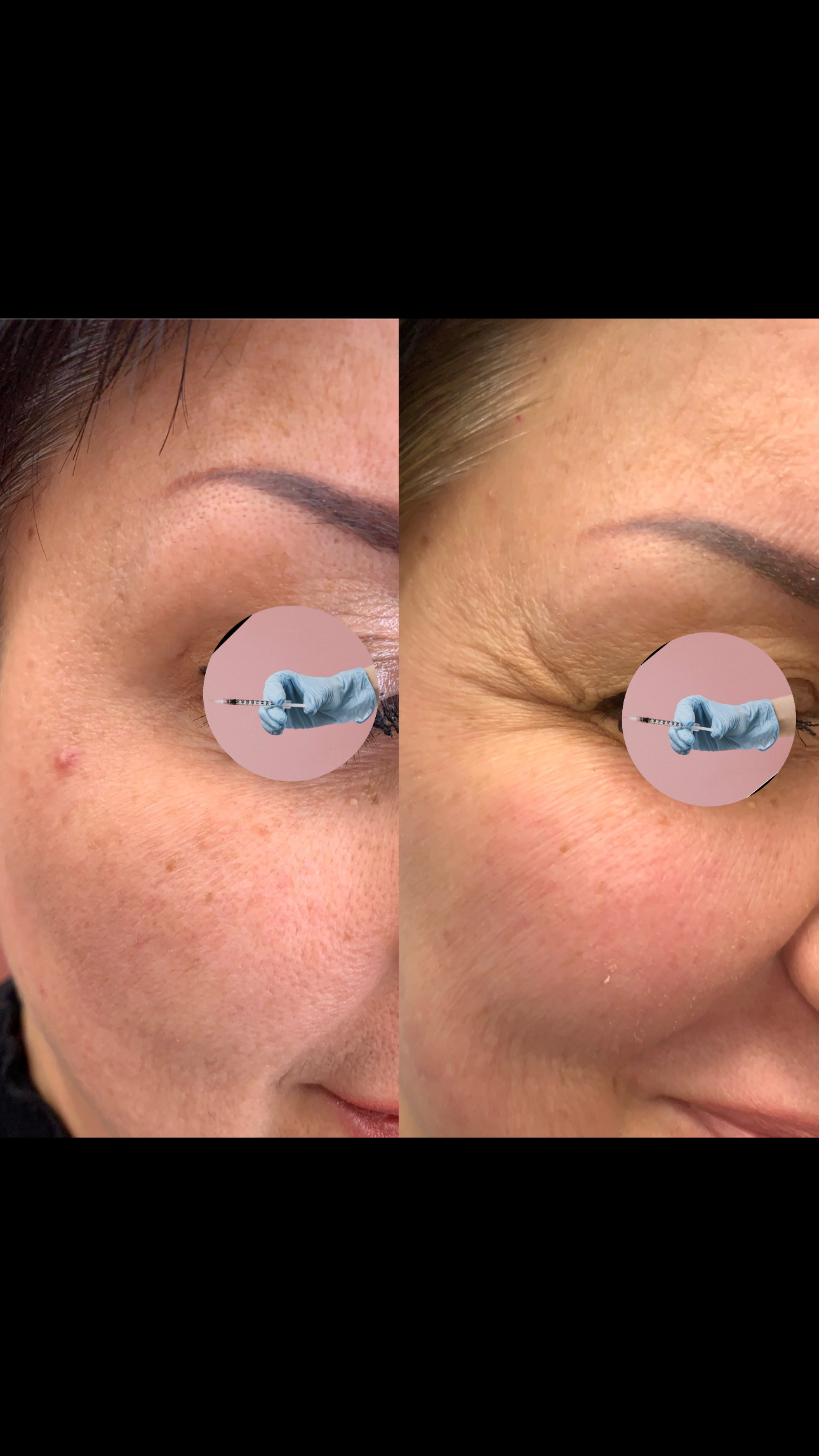 - Välj själv vilka områden du vill behandla; Panna, arga rynkan, kråksparkar, bunny lines, gummy smile el. sura mungipor