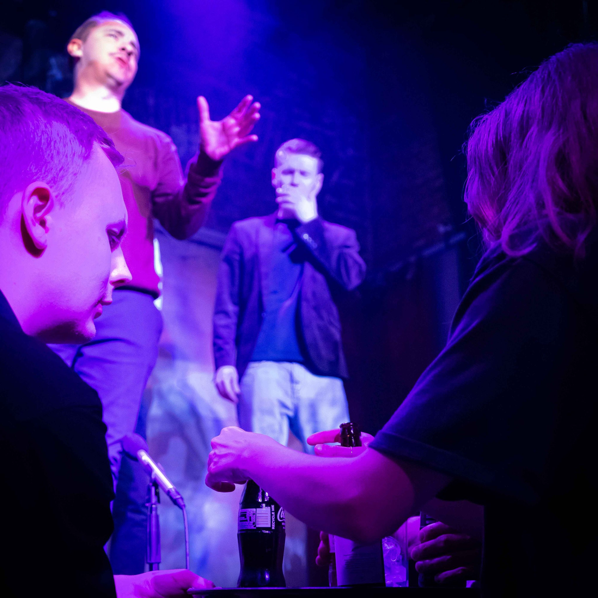 - Föreställningen utförs i Contrast Public House på Tredje Långgatan i centrala Göteborg
