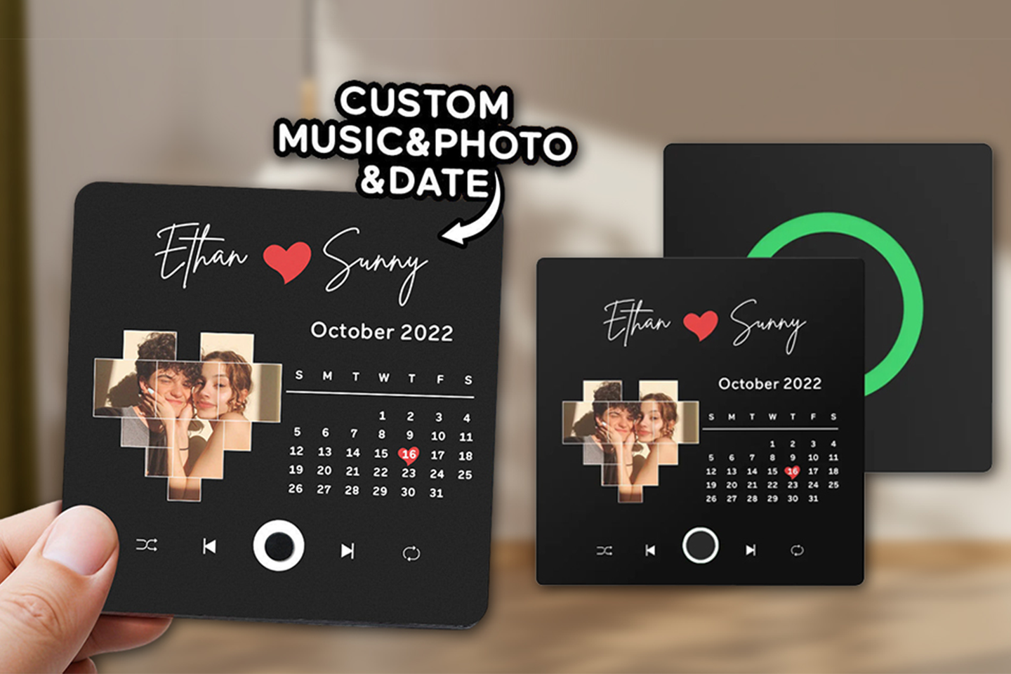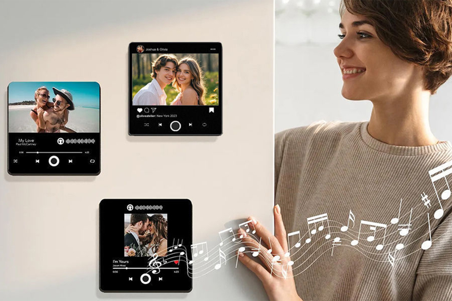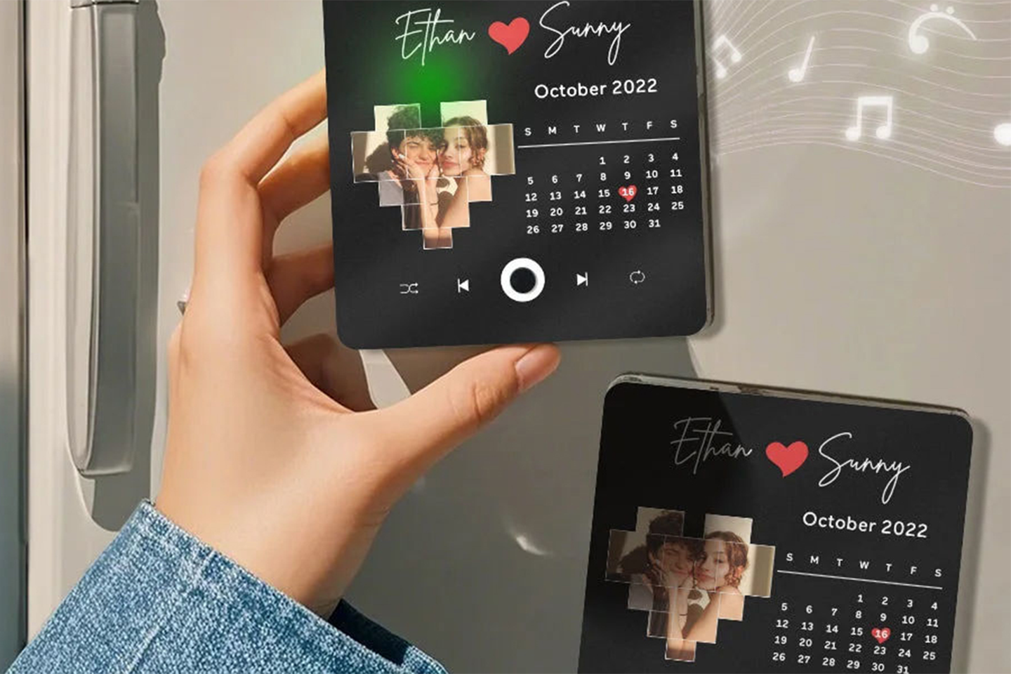Skapa personliga kylskåpsmagneter - roligt att ge bort, men också en rolig grej att pynta kylskåpet med! Designen är med låtplakett och kan anpassas med egen låt och bilder, vilket gör varje magnet unik.
