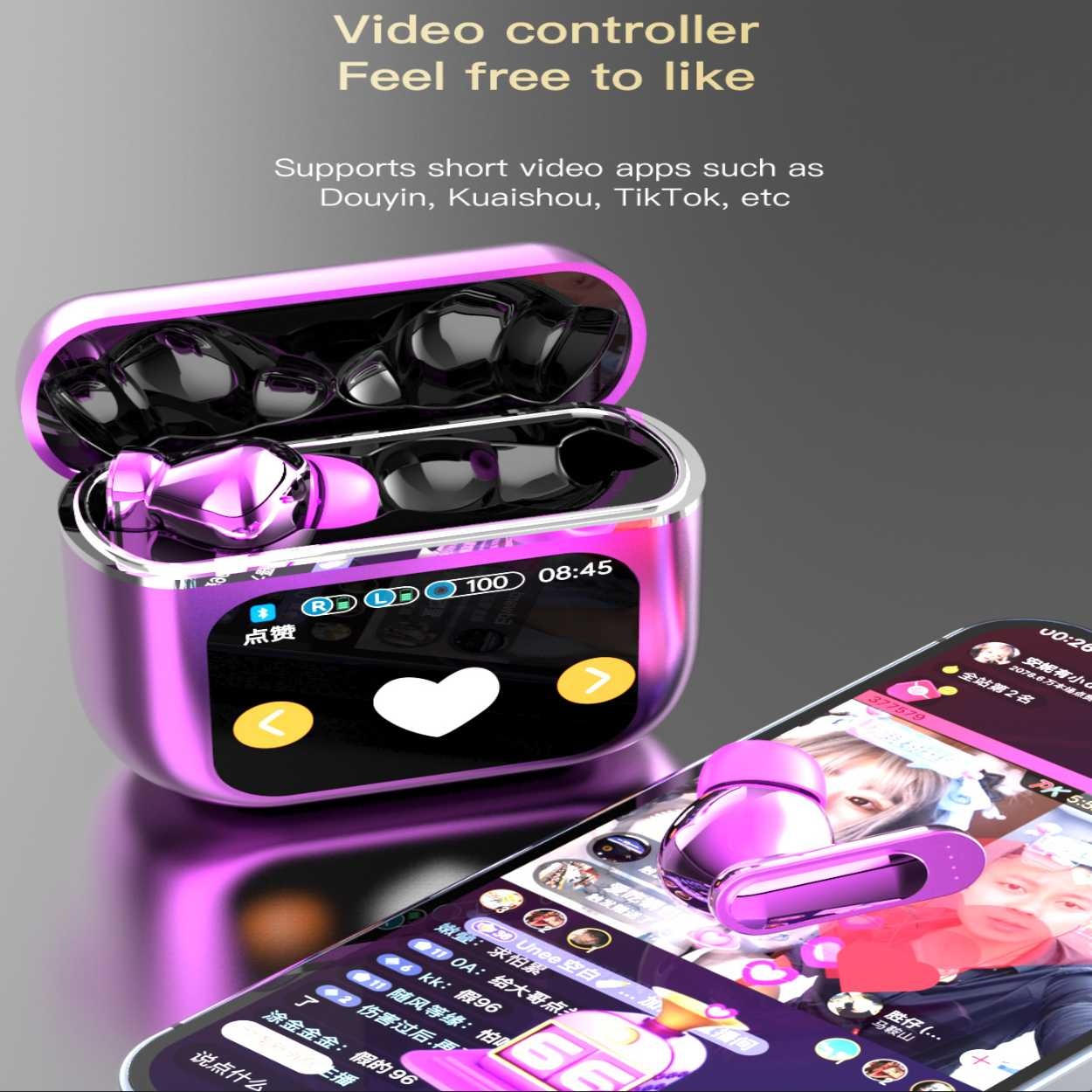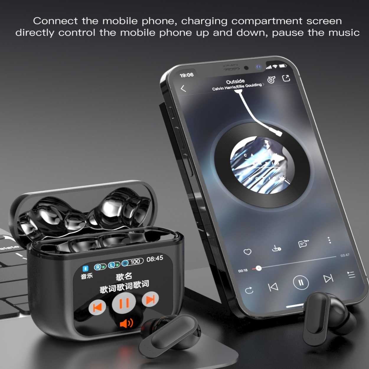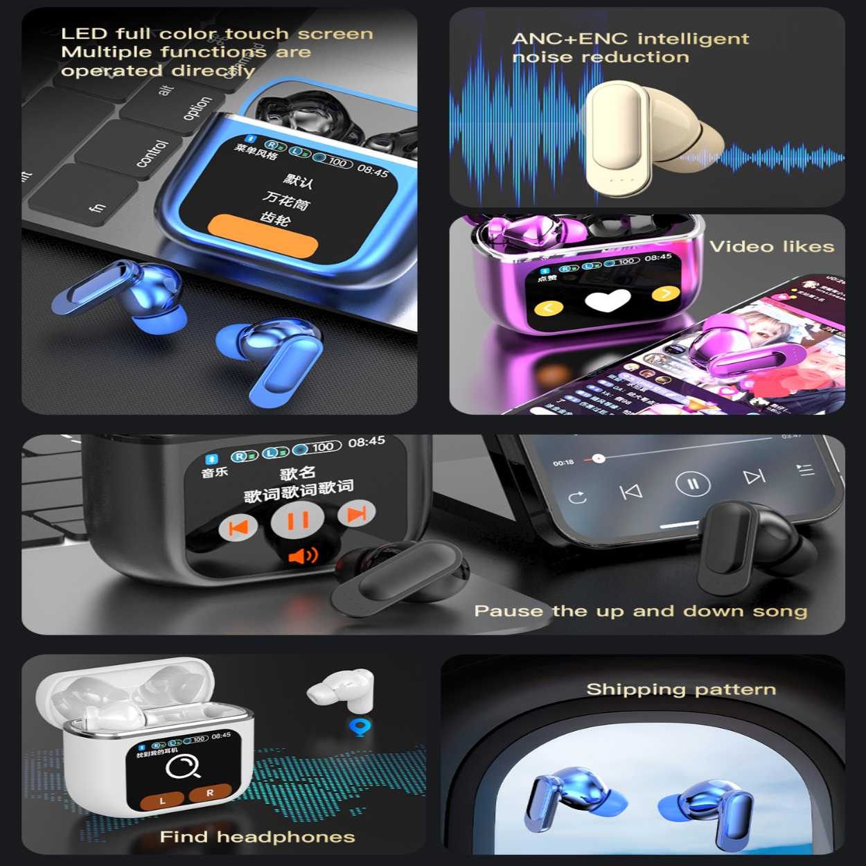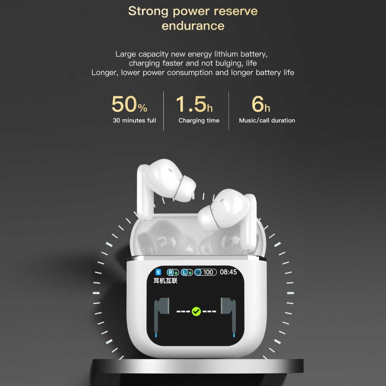 - Lyxig design med färgdisplay på laddningsfodralet: Enkla kontroller och elegant utseende som gör hörlurarna lika praktiska som snygga.