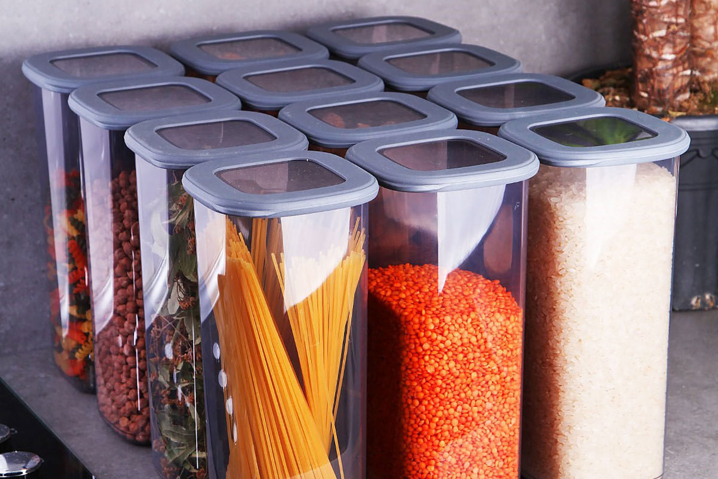 Förvara dina torrvaror så som pasta, ris eller kaffe i smarta förvaringsburkar. Burkarna är tonade i grå färg med viss transparens och ger smidig överblick av vad dom innehåller.
