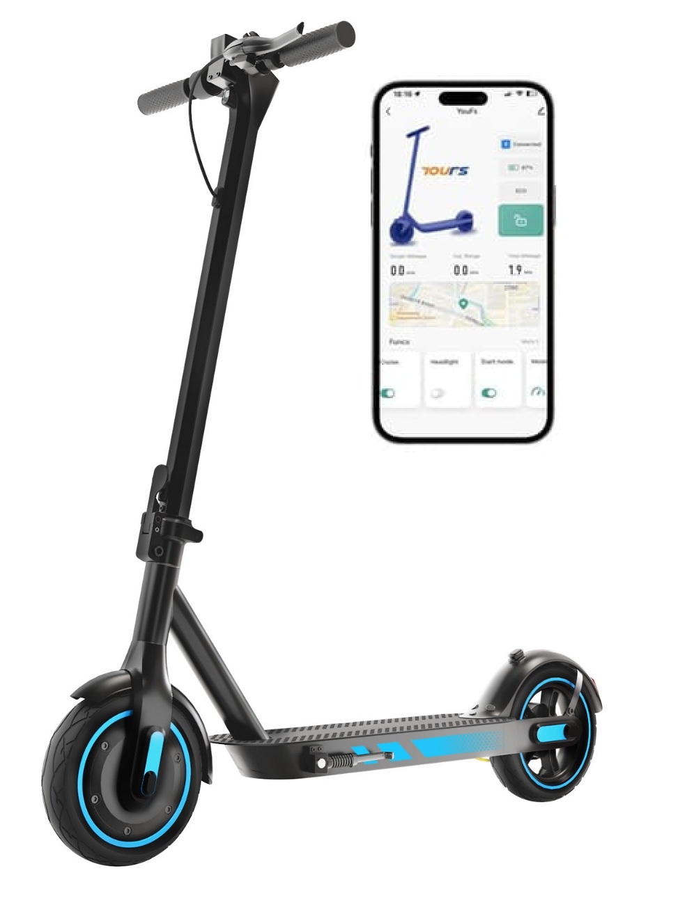 Appkontroll: Anslut scootern till appen YouFs för att se hastighet, batterinivå och justera inställningar.