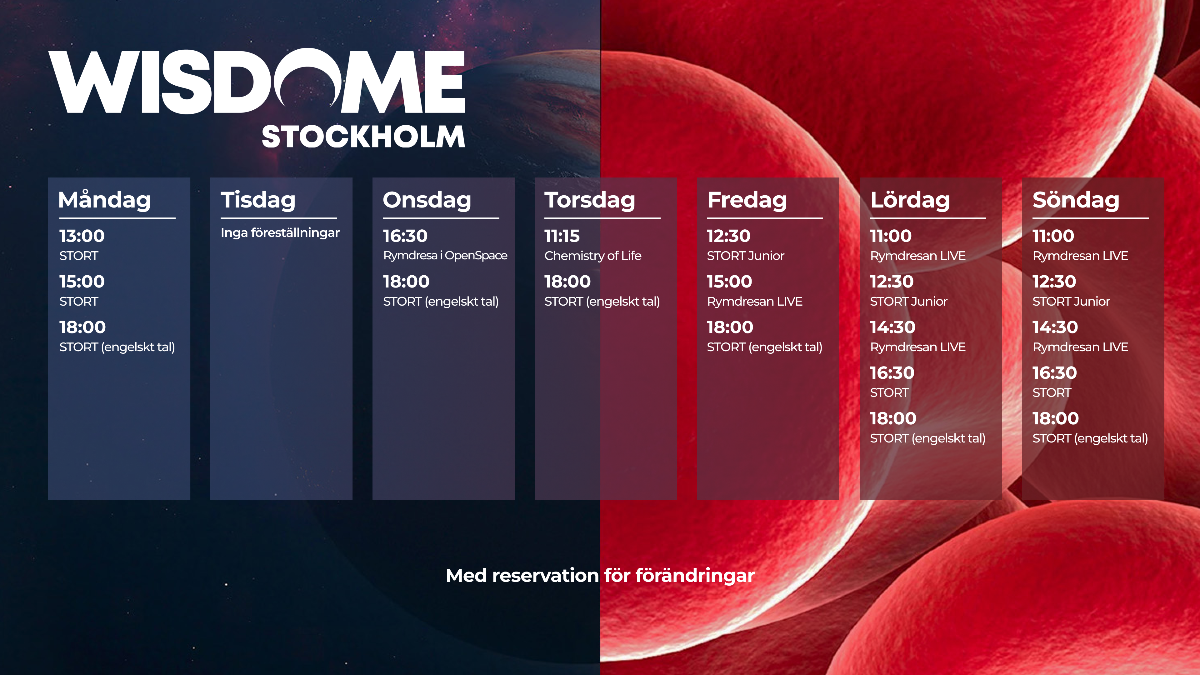 - STORT - Upplev rymdens enorma storlek och utforska hela det kända universum, från solsystemet ända ut till Big Bang. Visas även med engelskt tal under vissa dagar.