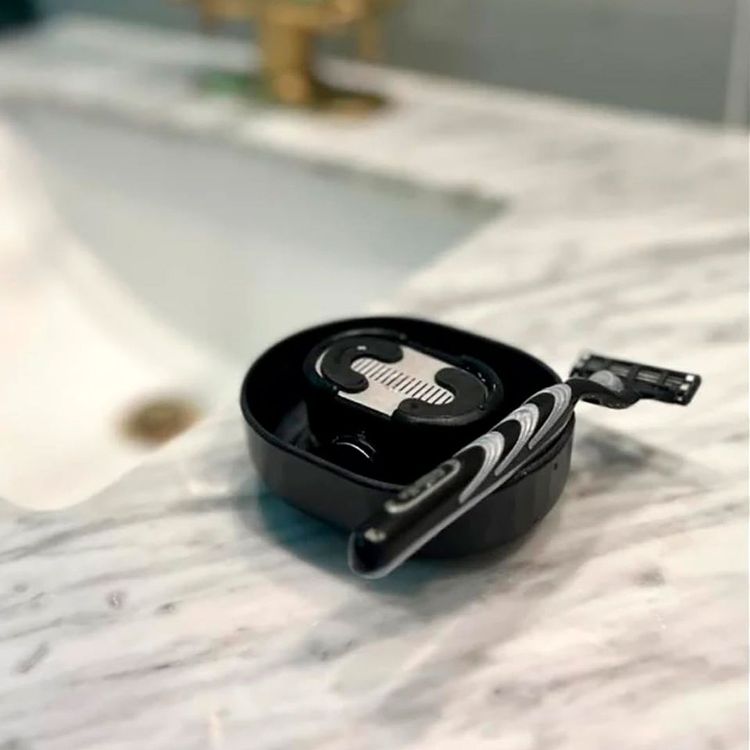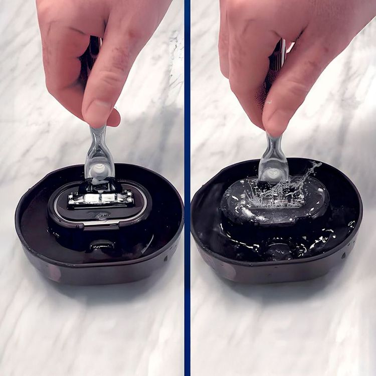 Den batterifria rakhyvelrengöraren gör det enkelt att hålla hyveln ren utan att slösa vatten. Genom en mekanisk spolning sköljs skäggstubb bort effektivt, vilket håller både rakhyvel och handfat rena längre. Den tåliga konstruktionen i PS-plast är lätt att hantera och tar minimalt med plats – perfekt hemma, på gymmet eller under resan. Ett praktiskt tillbehör som sparar både tid och vatten vid din dagliga rakning.