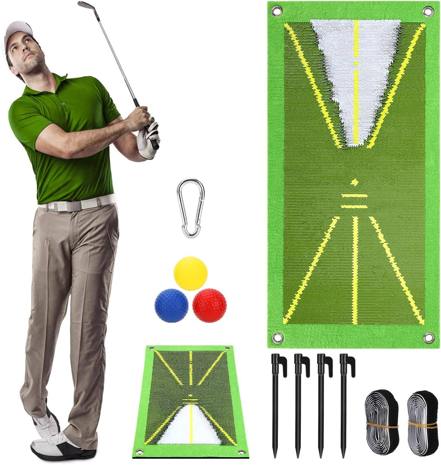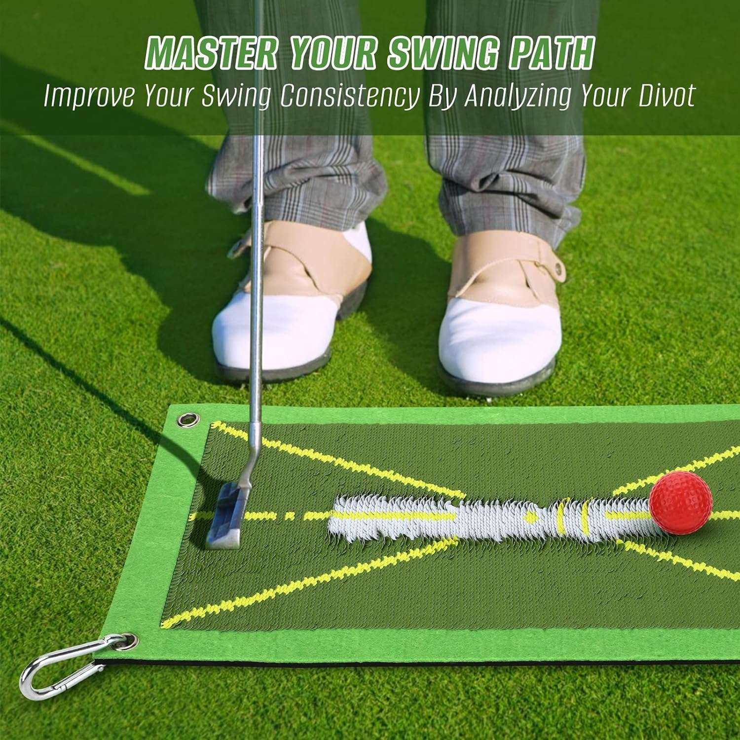 【Perfekt Gåva】Du får 1 x golfmatta, 1 x karbinhake, 4 x golvpinnar, 3 x PU-bollar, 2 x fästremsor. Perfekt för nybörjare och hjälper dig att bli skickligare och slå renare slag. En utmärkt gåva till golfälskaren.