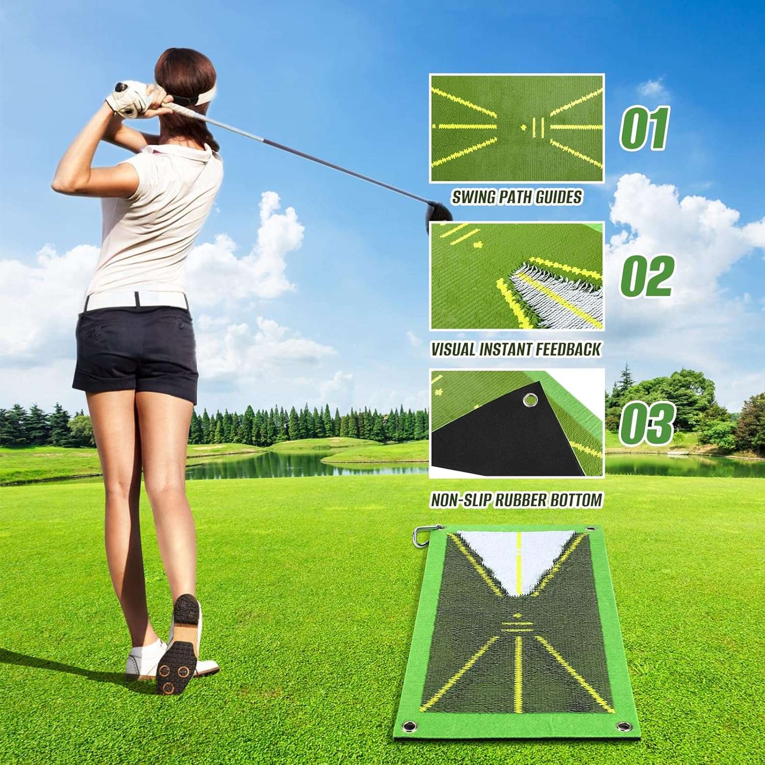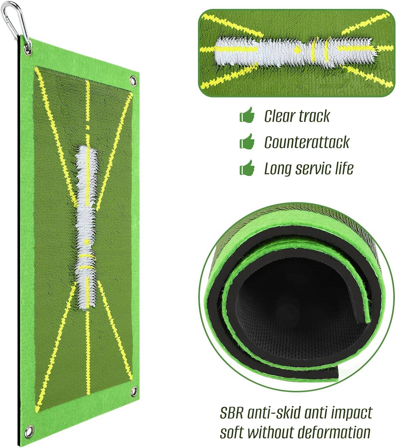 【Golf Swing Träningsmatta】 Denna träningsmatta visar bollens bana efter slaget och hjälper dig att analysera träffpunkten. Använd markeringarna på mattan för att korrigera din position och förbättra