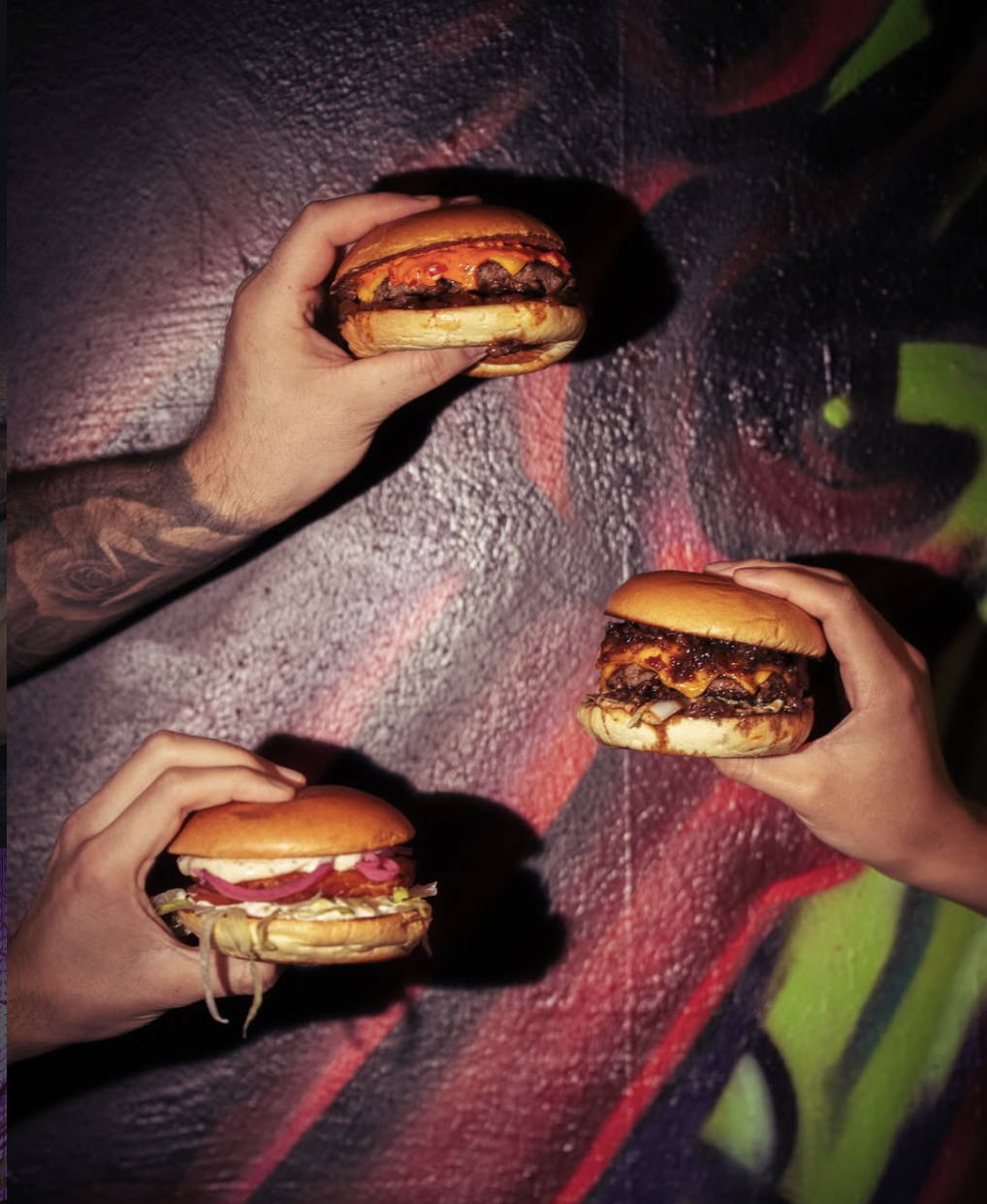 Smashburgare, paprika- och lökchutney, ost, krispsallad, nduja-majo, färsk chili