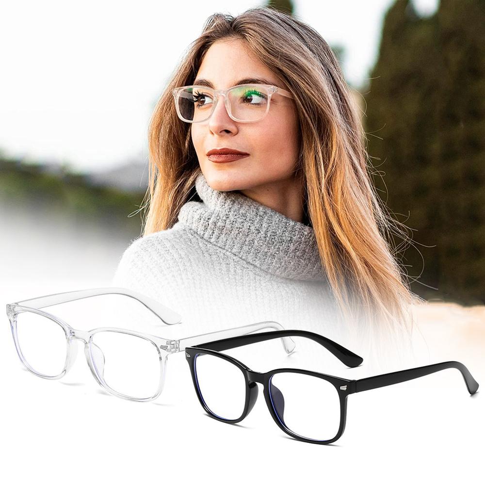 Glasögon med blåljusfilter i stilig och ren design. Glasögon utan styrka som filtrerar bort det skarpa blåa ljuset från skärmar. Det blåa ljuset kan leda till trötthet och huvudvärk. Hjälp dina ögon att slappna av medan de kollar på datorn, mobilen eller TV:n.