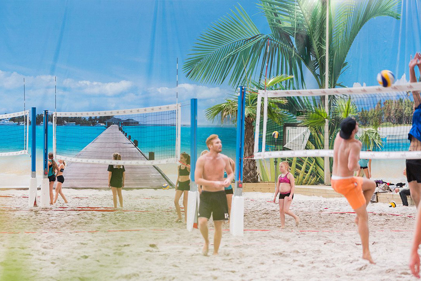 Beach Center tillhandahåller världens största inomhushall för beachvolleyboll. Här kombineras mat, sport och nöje på samma plats.