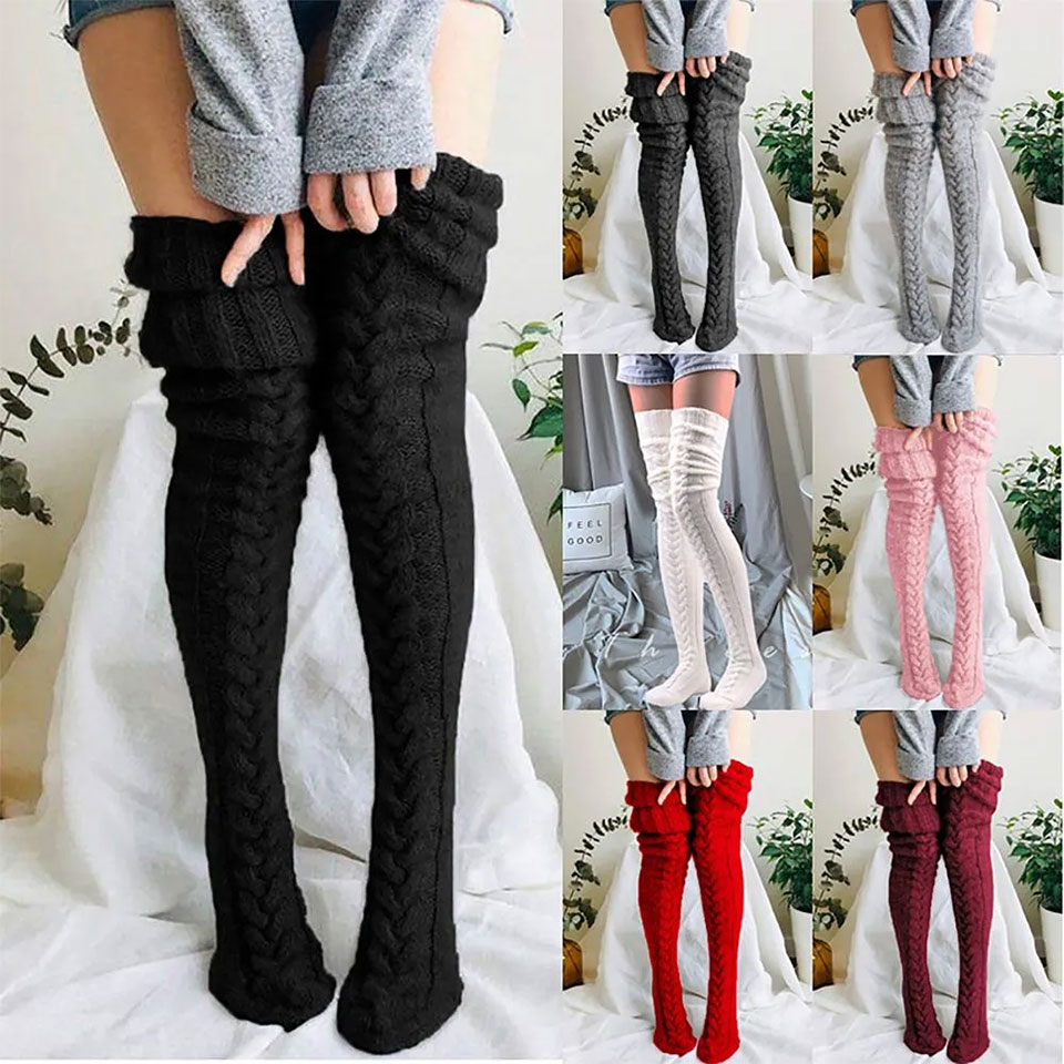 Håll benen varma under kyliga dagar med dessa trendiga stickade knästrumpor. Med mjukt och stretchigt material och kabelstickning blir de både en varm och snygg detalj som passar till alla outfits.