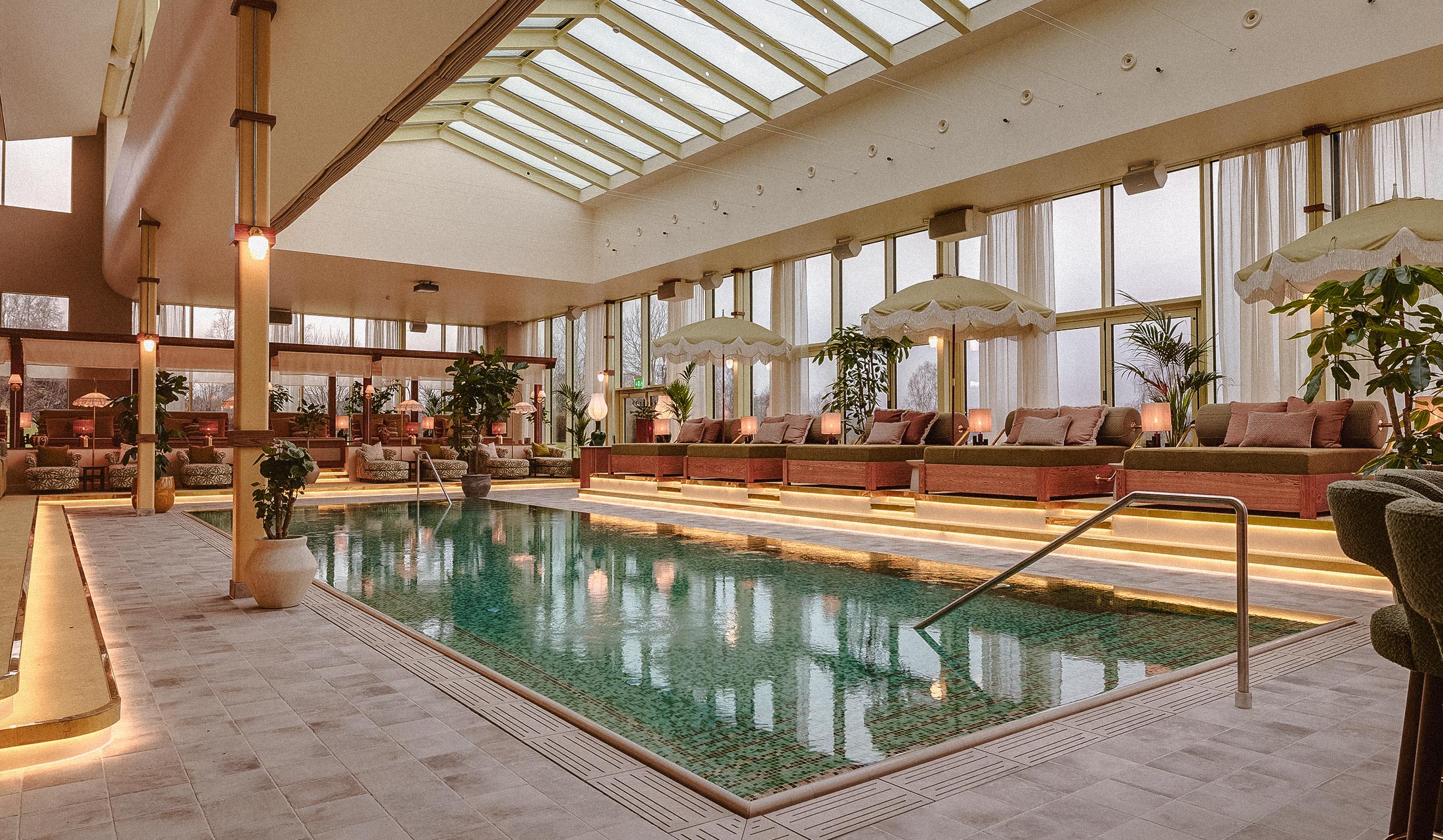 Pool Club & Spa på Hjortviken är en rofylld oas. Här väntar uppvärmda pooler, bastu och eldrelax med utsikt över naturen.