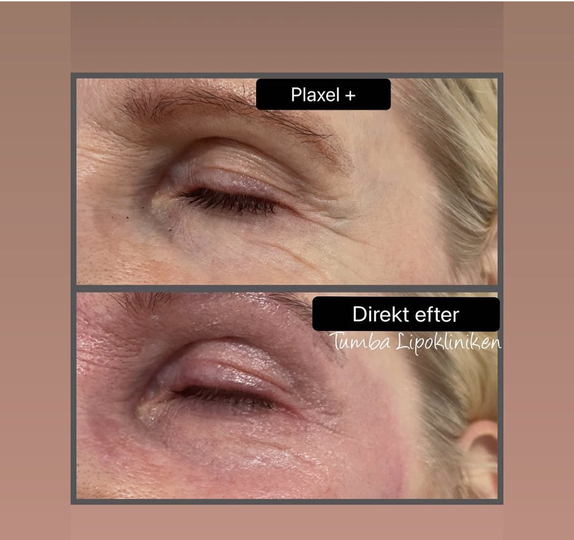 Plaxel Plus använder äkta plasmaljus som är svagt lilafärgat för att strama upp huden utan att nålen vidrör den. Till skillnad från traditionella plasmapennor lämnar den inga svarta prickar. Efter behandlingen uppstår små skorpor och lätt svullnad som snabbt avtar. Redan efter 24 timmar kan du använda mineralsmink.