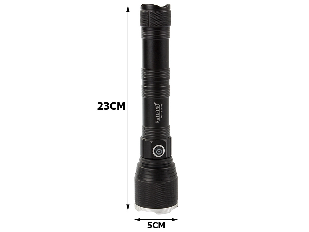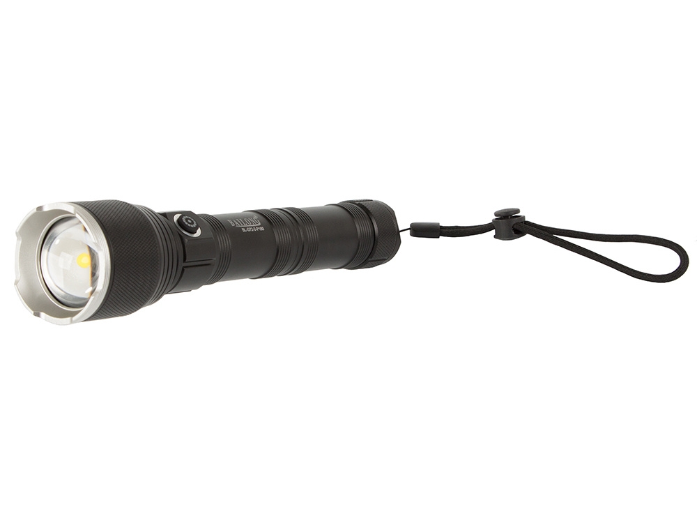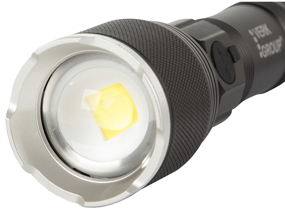 Zoomfunktion - steglöst justerbar för att ändra brännvidden på det infallande ljuset, tack vare användningen av en fokuseringslins. Detta ger dig möjlighet att justera från en smal stark ljusstråle med en lång räckvidd på 1000m till ett brett fält som lyser upp ett stort arbetsområde. Dessa egenskaper gör ficklampan otroligt passande för alla typer av terräng.