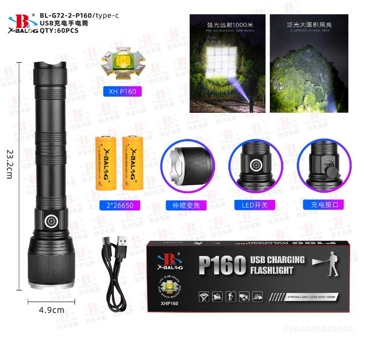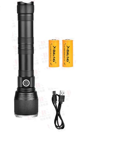 Två högkvalitativt laddbara 26650 litiumjonbatteri ingår för att driva ficklampan, vilket gör att ficklampan kan köras under lång tid.