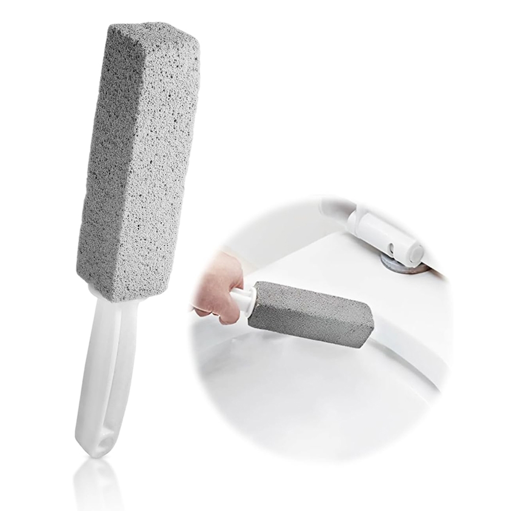 Rengöringsborste med pimpsten hjälper dig att rengöra toalett och handfat på ett naturligt sätt. Den är kraftfull mot de tuffaste fläckarna av kalk och avlagringar. Den ska användas våt för att inte