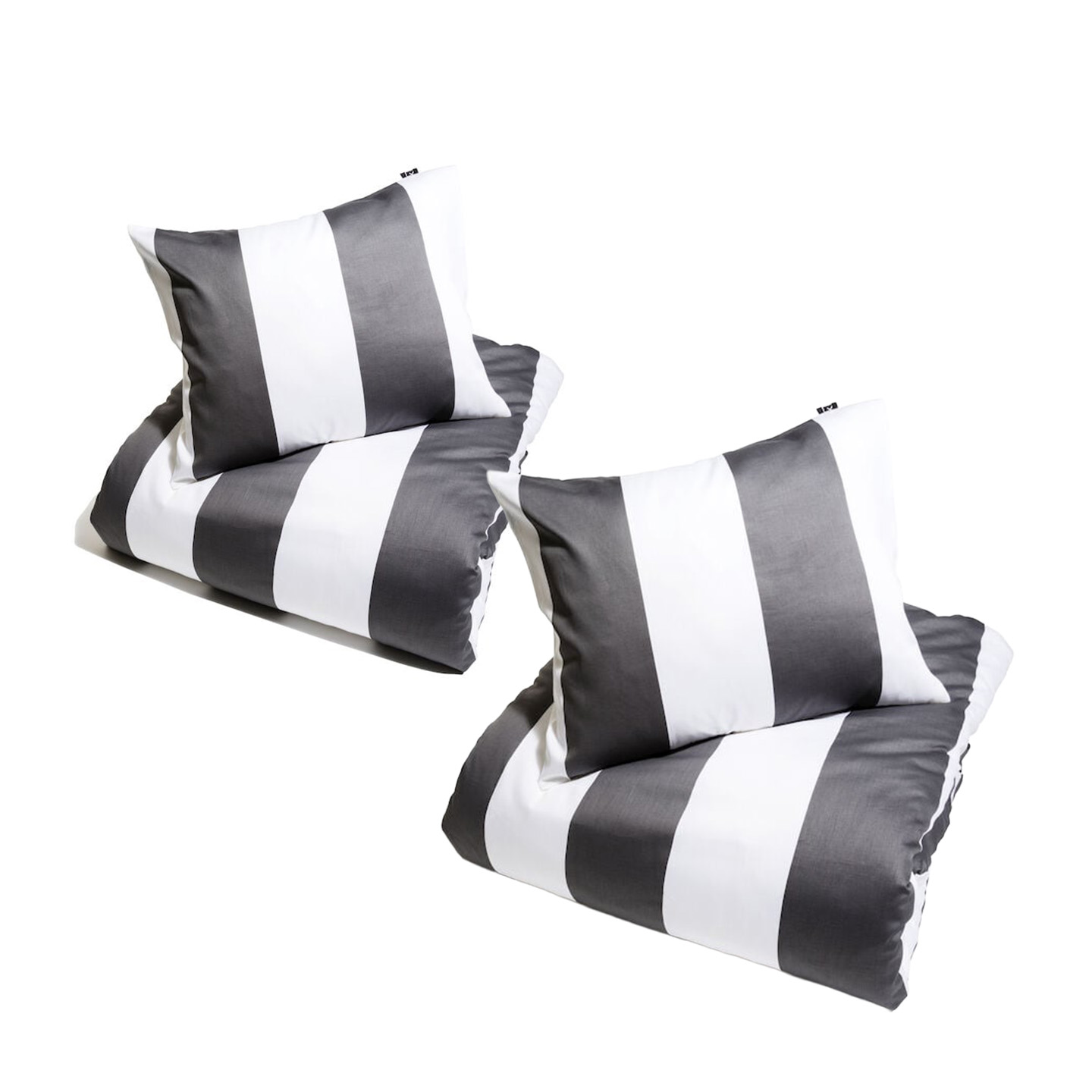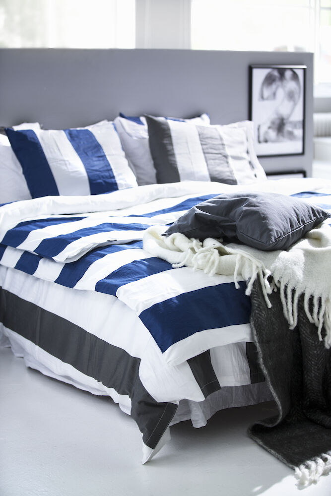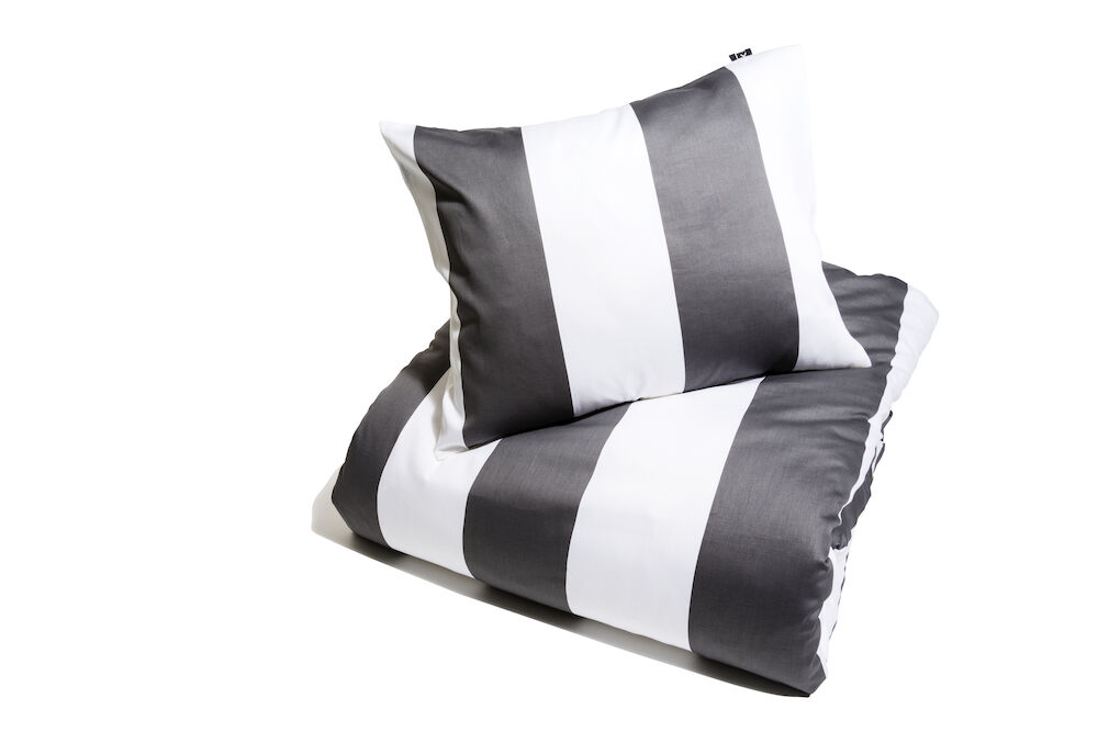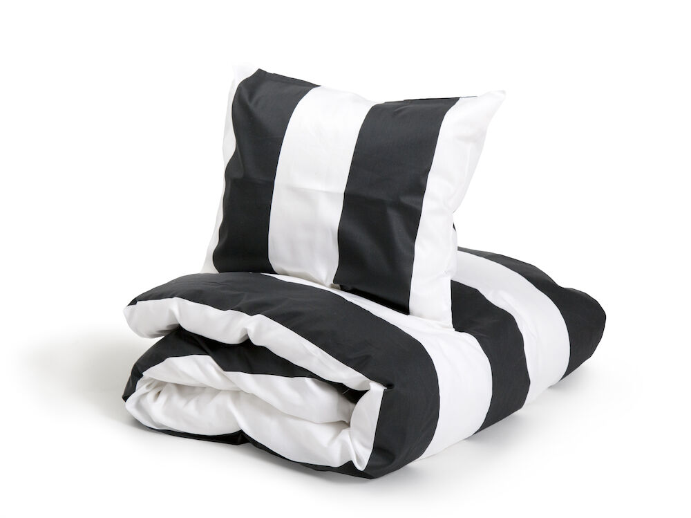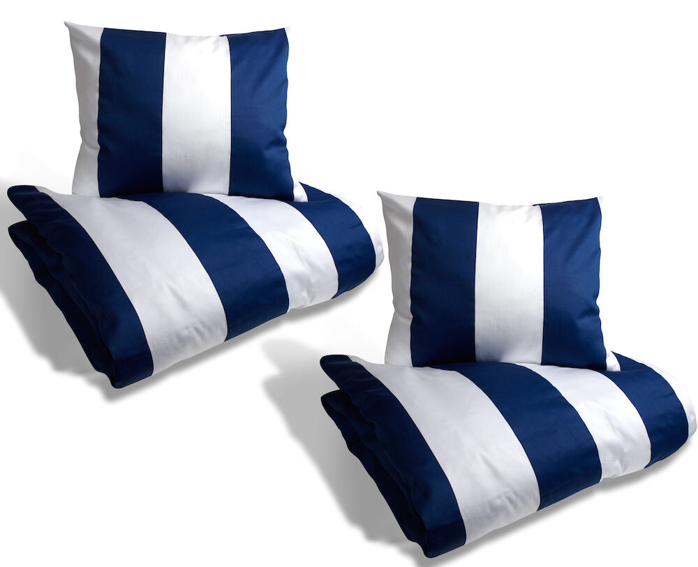 Kryp ner i sängen bäddad med bäddset av mjukaste satin med stilren design av breda ränder. Välj svart, blå, eller grå. Sov gott.