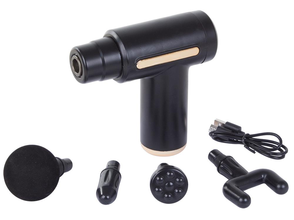 Massageapparaten har designats i en ergonomisk pistolformad form så att den ligger perfekt i handen. Den innehåller 4 olika spetsar, var och en designad för olika muskeldelar.