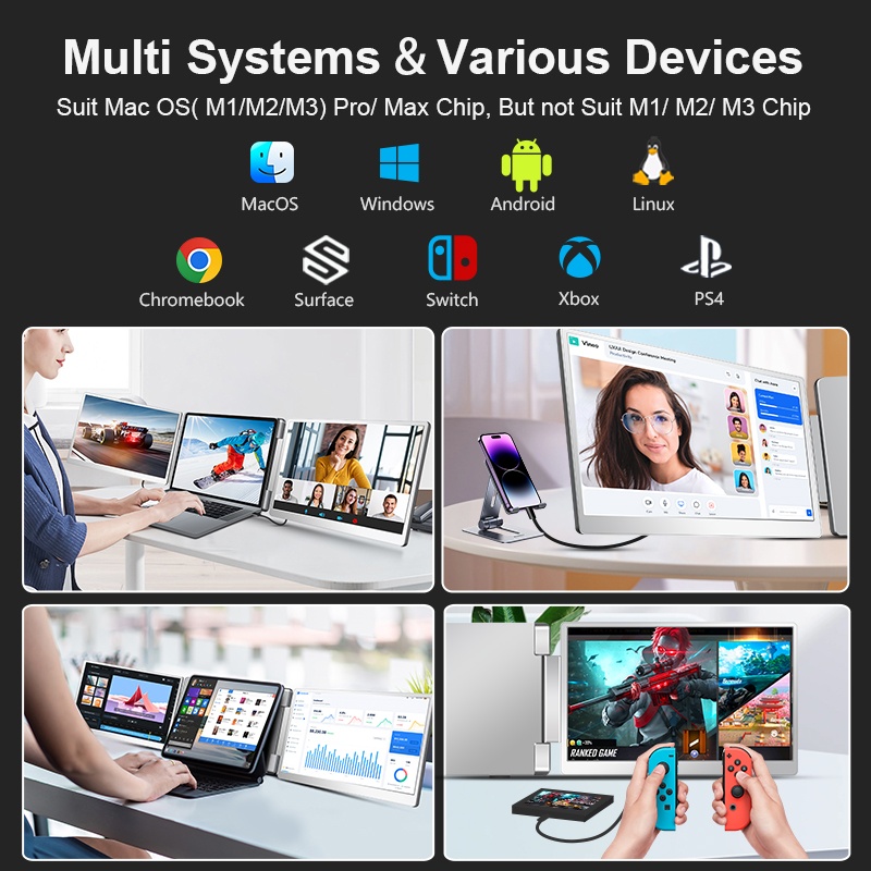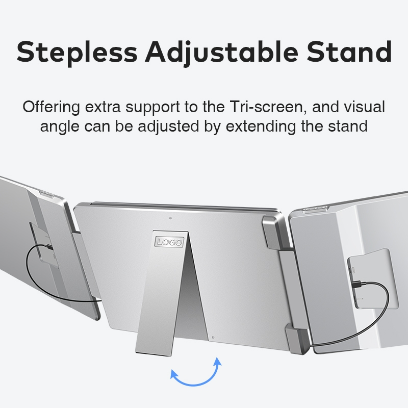 Med våra tri-screens, som du enkelt ansluter till din laptop, så får du möjlighet att jobba sömlöst med tre skärmar/applikationer på en och samma gång. Samtidigt som du tar ditt teamsmöte på huvudskärmen så kan du ha till exempel mail och statistik på den andra respektive tredje skärmen. En suverän lösning när du inte har tillgång till kontorets dubbla skärmar. Perfekt för externa möten, hotellrummet eller hemmakontoret.