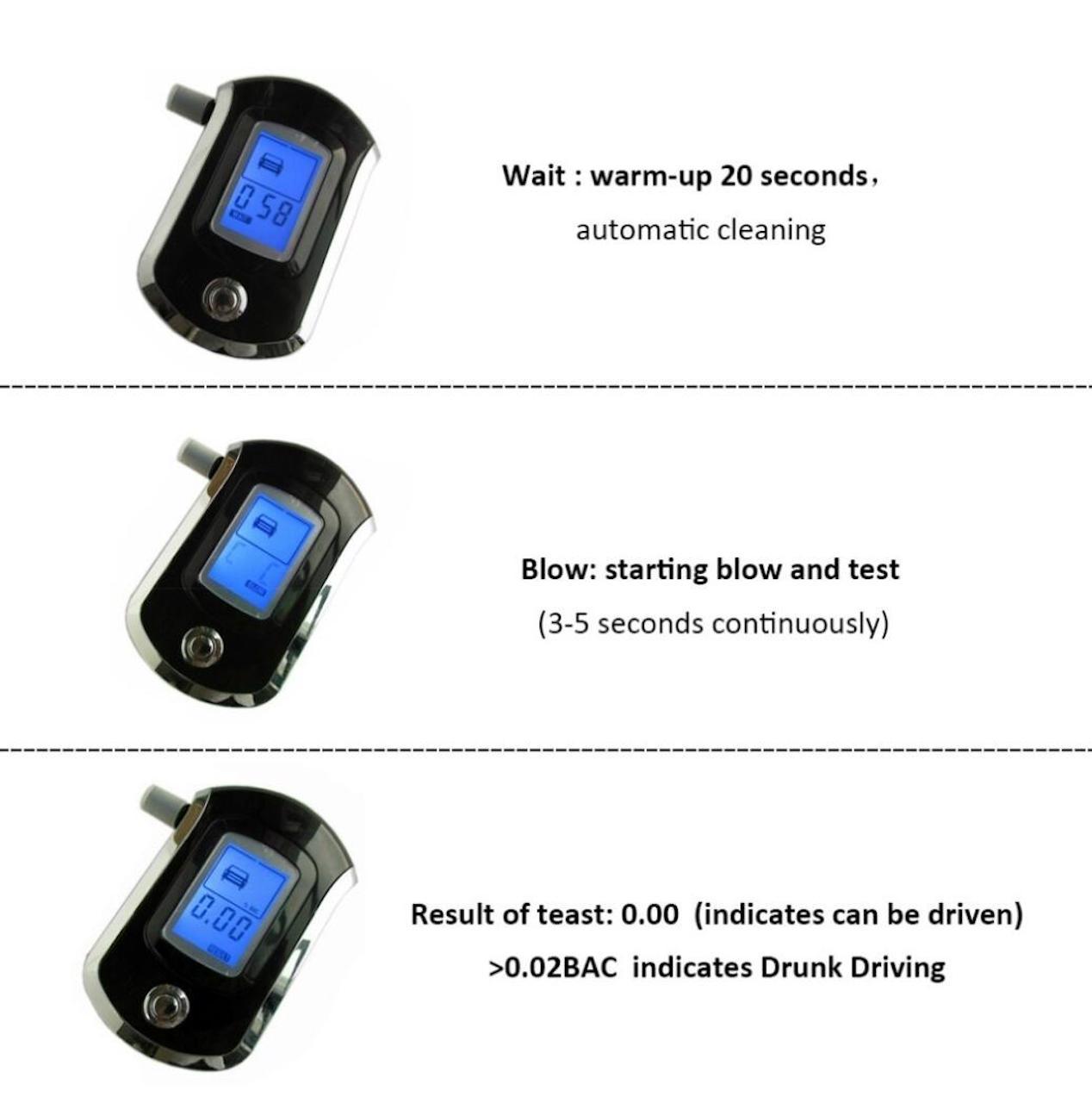 ProAlcoCheck är en professionell digital alkomätare som mäter mängden alkohol i ditt blod med hög precision. Den har en lättavläst digital skärm och kommer med 5 återanvändningsbara munstycken. Perfekt för att få en indikation på din körduglighet eller som en rolig aktivitet på festen. Använder 3xAAA-batterier (ingår ej).
