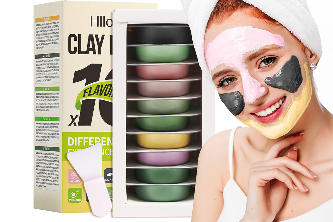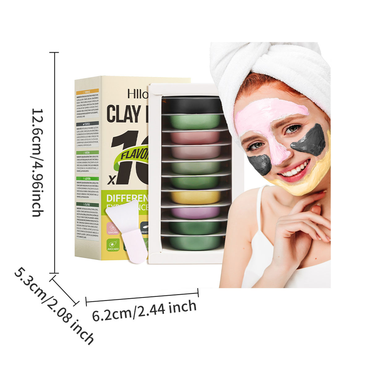 Ge huden ny lyster med Clay Facial Mask Set, ett komplett set med tio individuellt förpackade ansiktsmasker i praktiska engångsbehållare. Varje mask är berikad med ingredienser som rengör på djupet, återfuktar och balanserar huden för en fräsch och klar känsla. Behållarna bevarar varje mask fräsch och hygienisk, vilket gör dem perfekta både för resan, gymväskan eller när du vill unna dig en lyxig stund av egenvård hemma.