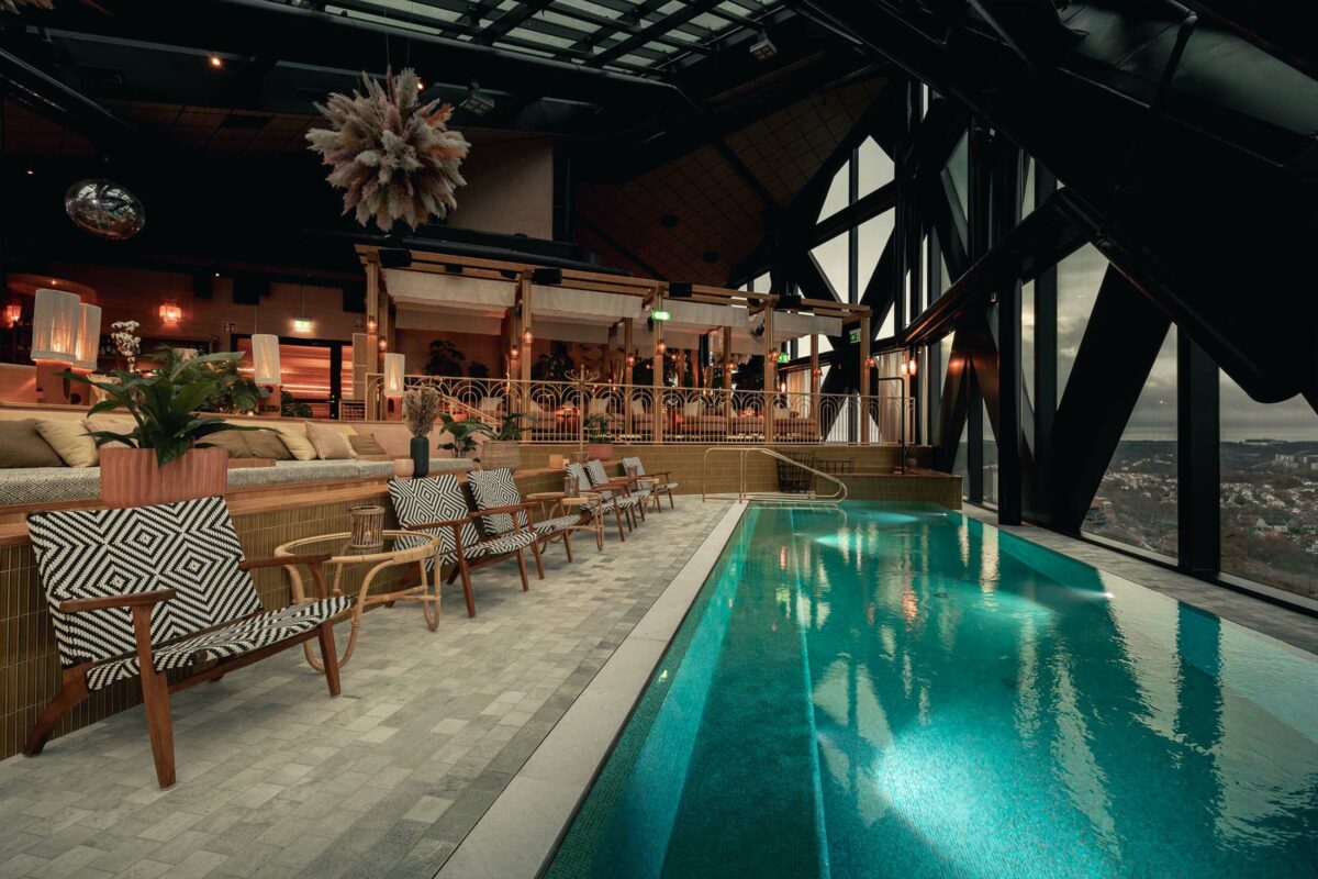 Högst upp i Jacy´s hittar du Pachanga Pool Club. Här har du alla beståndsdelar för ett perfekt pool party – hissnande vyer över Göteborgs skyline, goda drinkar, mjuka day beds, en varm pool att glida ner i och en glittrande discokula. Platsen är inspirerad av Jacy´s favoritklubbar i Miami och trots att det både finns pool och bastu så det här är inget traditionellt spa. Här får du energi av den sköna musiken, den livfulla atmosfären och viben.