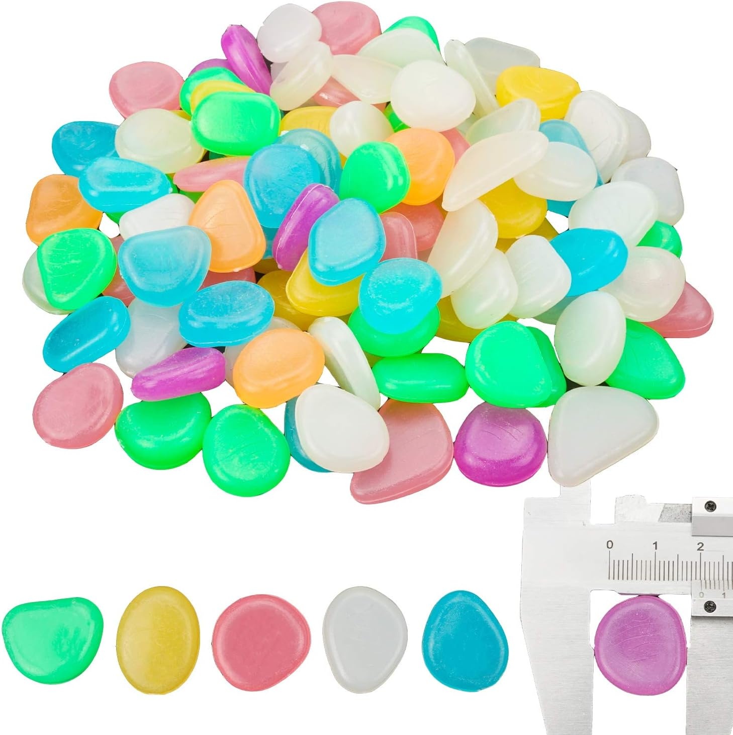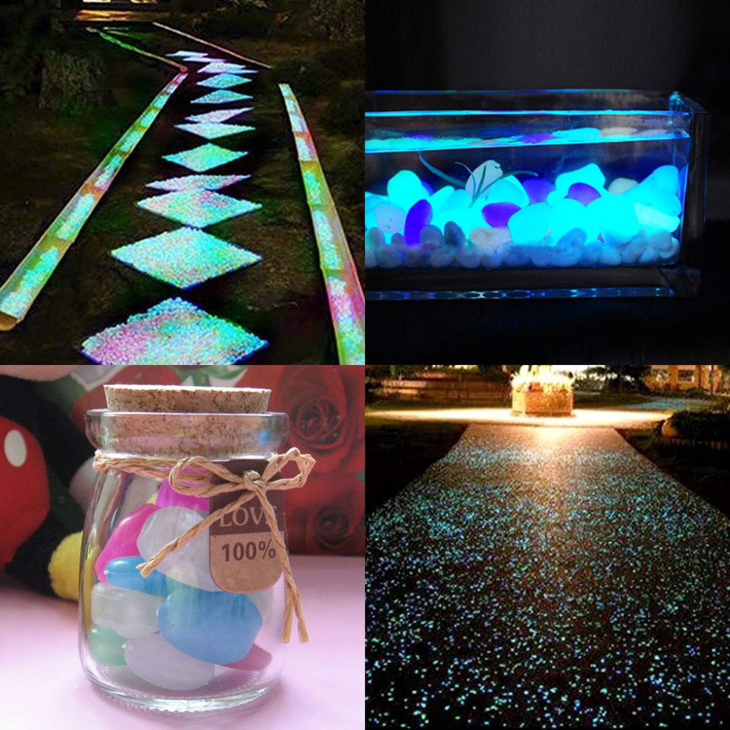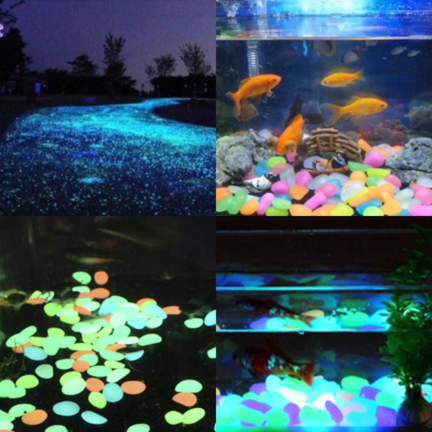 Färgglada stenar för trädgården som lyser i mörkret. Perfekt för trädgården, akvariet eller parkeringsplatsen. Giftfria och säkra att använda. Stenarna behöver solljus under dagen för att kunna lysa
