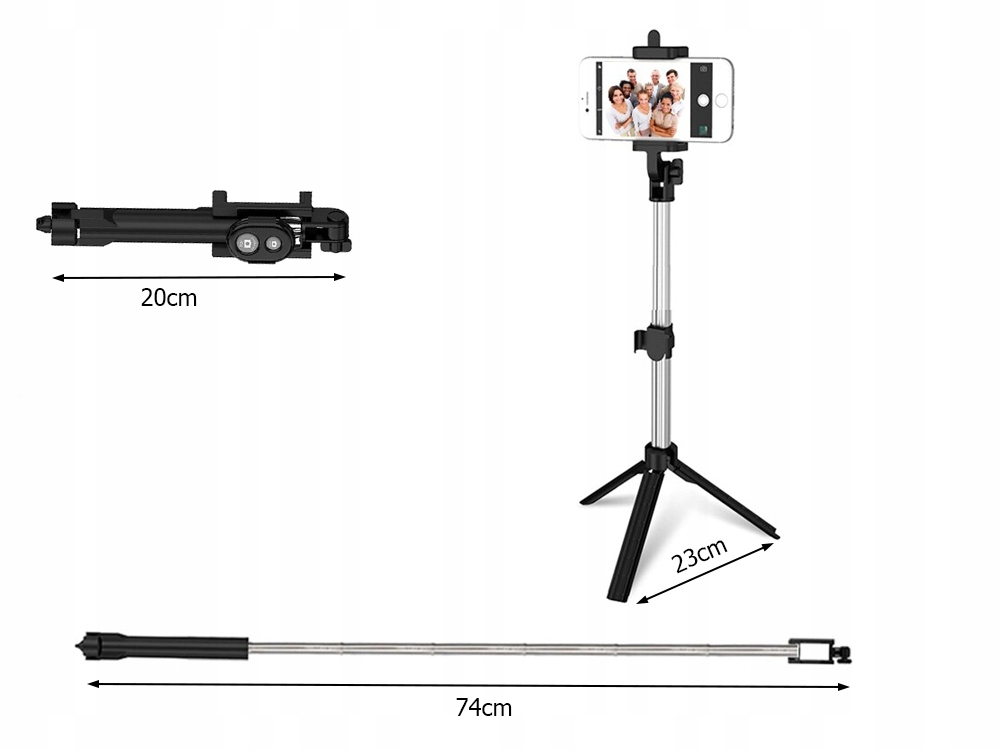 Efter att ha fällt ut monopoden för att bilda ett stativ kan vi ta ett foto inom en räckvidd på upp till 10-15 m! Gadgeten kommer att vara en bra lösning för resenärer som vill fånga nyupptäckta platser, erövrade toppar, men inte bara - monopoden kommer även att fungera under familjemöten, med vänner etc. Bara att ställa den på en plan yta, ta fjärrkontrollen och njut av det unika fotot!