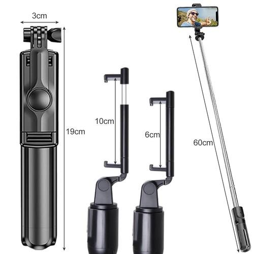 Monopod sträcker sig till längden 60 cm, och telefonhållaren roterar 360 grader.