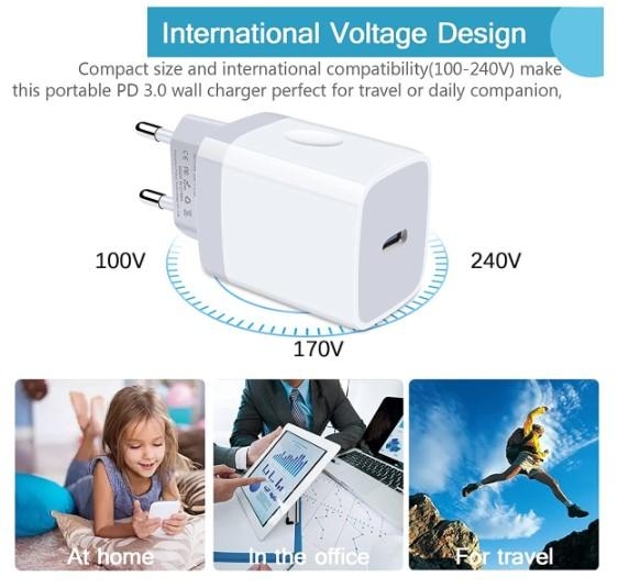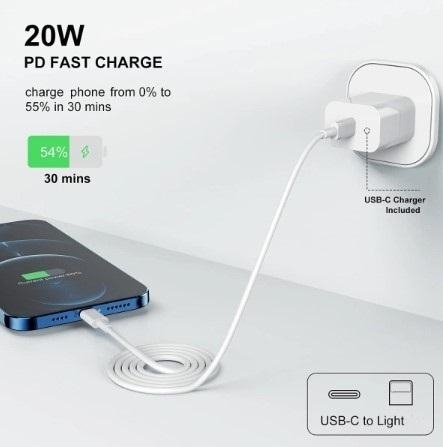 20W PD 3.0 Snabbladdare kompatibel med iPhone (äldre modellen lightning) - Snabbladdare kompatibel med iPhone. Laddaren är utrustad med 20W PD 3.0 USB Type C väggkontakt, PD 3.0 Snabbladdning USB C-port i laddaren till kan ge maximalt 20W uteffekt för att ladda din enhet Hastigheten är 3 gånger snabbare än den ursprungliga 5 W -laddaren, och det tar bara 30 minuter att ladda iPhone 12 upp till 50%, vilket sparar mer än 1,5 timmar.