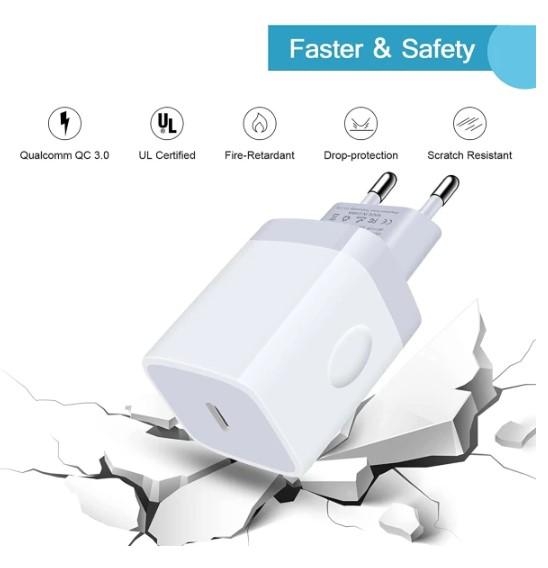 20W PD 3.0 Snabbladdare kompatibel med iPhone (äldre modellen lightning) - Snabbladdare kompatibel med iPhone. Laddaren är utrustad med 20W PD 3.0 USB Type C väggkontakt, PD 3.0 Snabbladdning