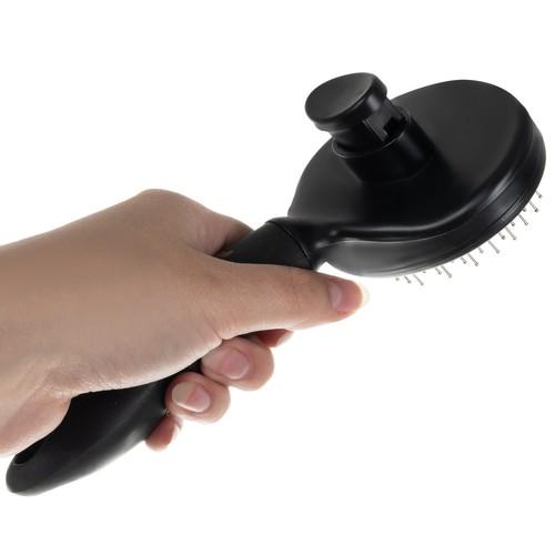 Borsten är självrengörande, tack vare den bekväma knappen tar den effektivt och snabbt bort hår från nålarna. Det är en väldigt bekväm lösning när du kammar ett djur, eftersom du inte behöver dra ut håret när du borstar, använd bara den bekväma knappen så kommer håret upp av sig självt.