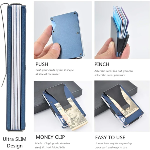 - Plats för upp till 12 kreditkort och 100 sedlar