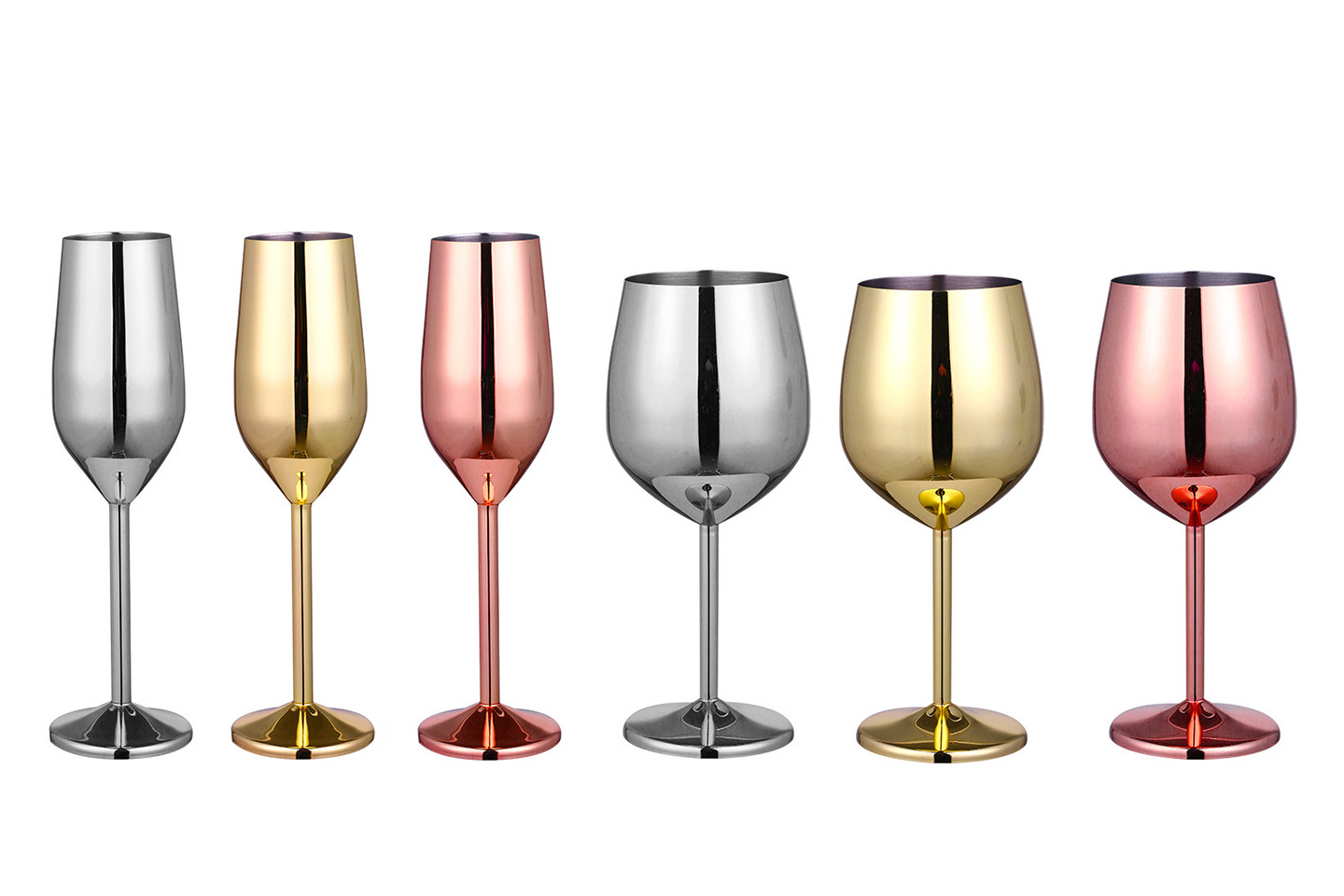 Eleganta vin- eller champagneglas i blankt rostfritt stål utformade i stilig och tidlöst klassisk design. Glasets runda form gör att de ligger bra i handen.