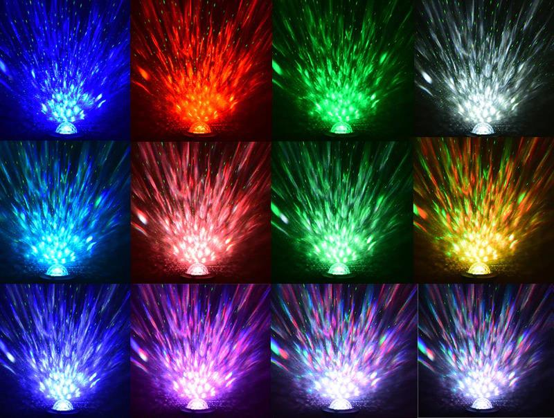 - Projicerar stjärnhimmel och färgglada galaxeffekter