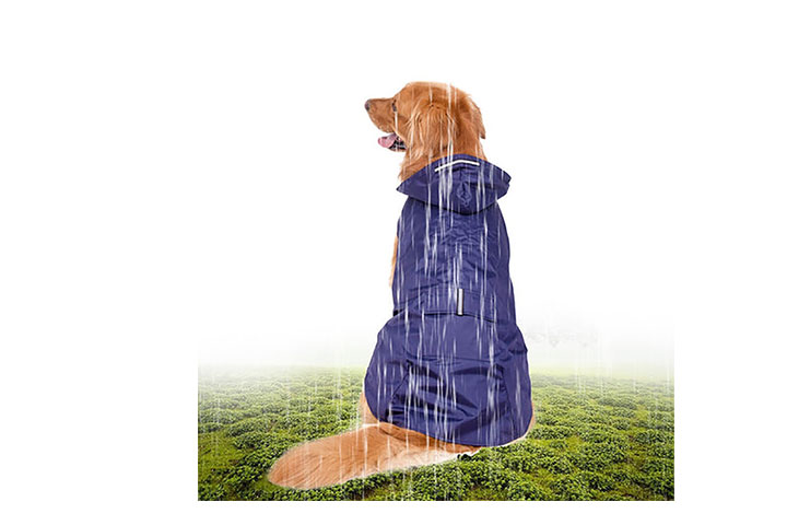 Vattenavvisande hundtäcke huva och mjukt meshfoder. Regntäcket har ett reflexband och en liten bakficka.