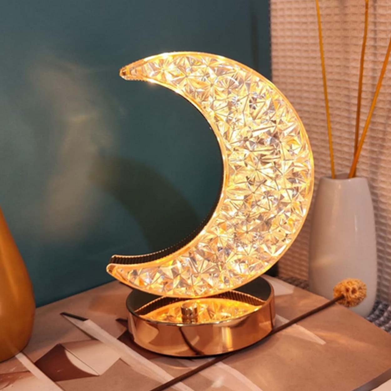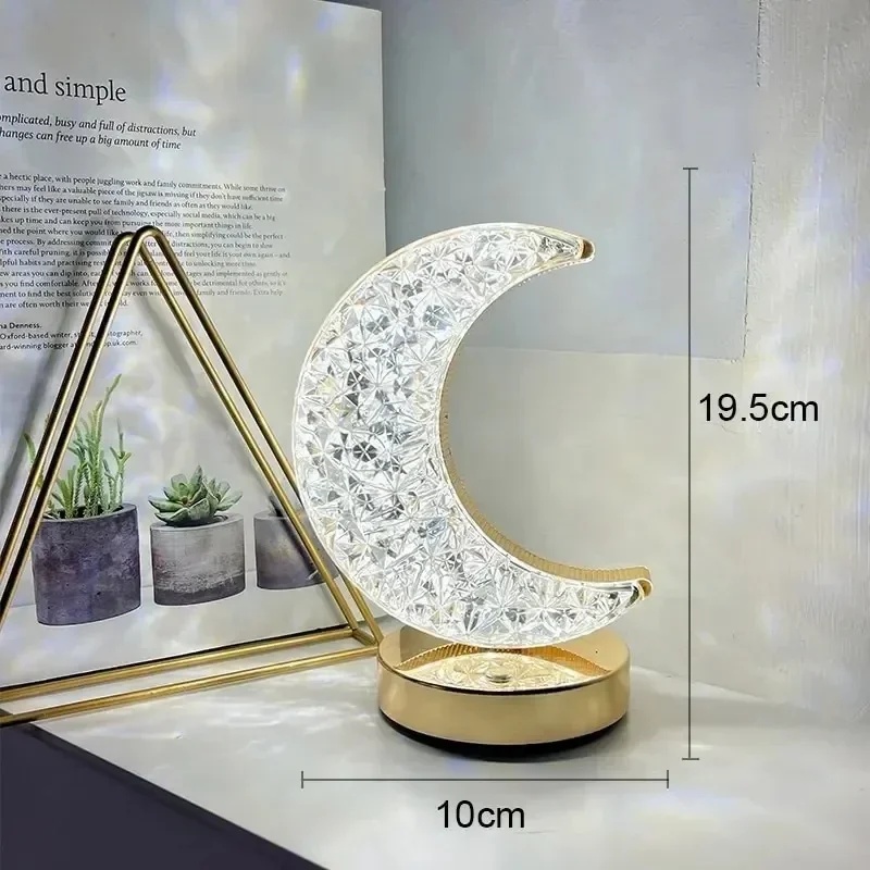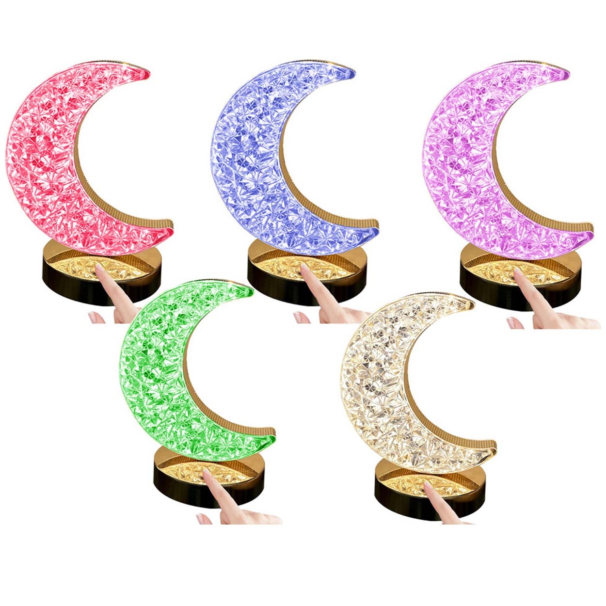 Kristallmåne LED-bordslampa med RGB och Uppladdningsbart Batteri