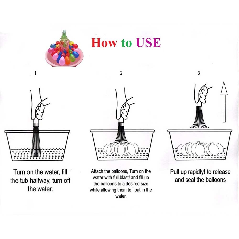 Dessa vattenballonger fylls blixtsnabbt och det bästa av allt - de behöver inte knytas! Den smarta tekniken gör att du kan fylla 111 vattenballonger snabbt. Det är enkelt att komma igång: