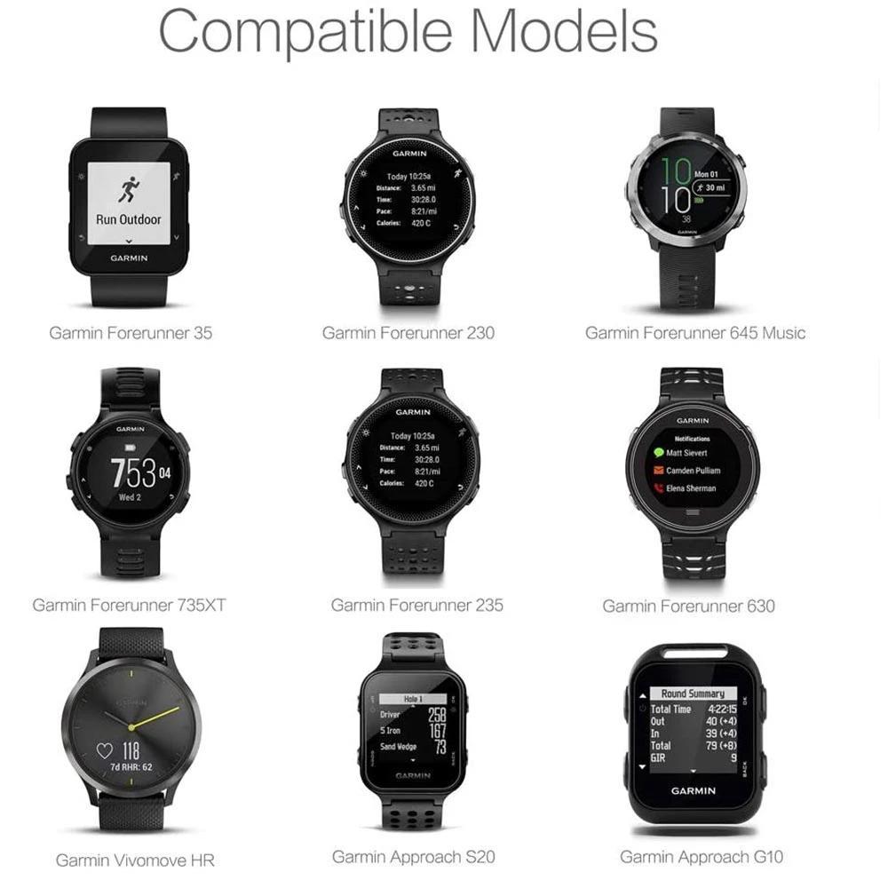 - Kompatibilitet: Forerunner 35, 230, 235, 630, 645 Music, 735XT, Vivomove HR, Approach G10, Approach S20