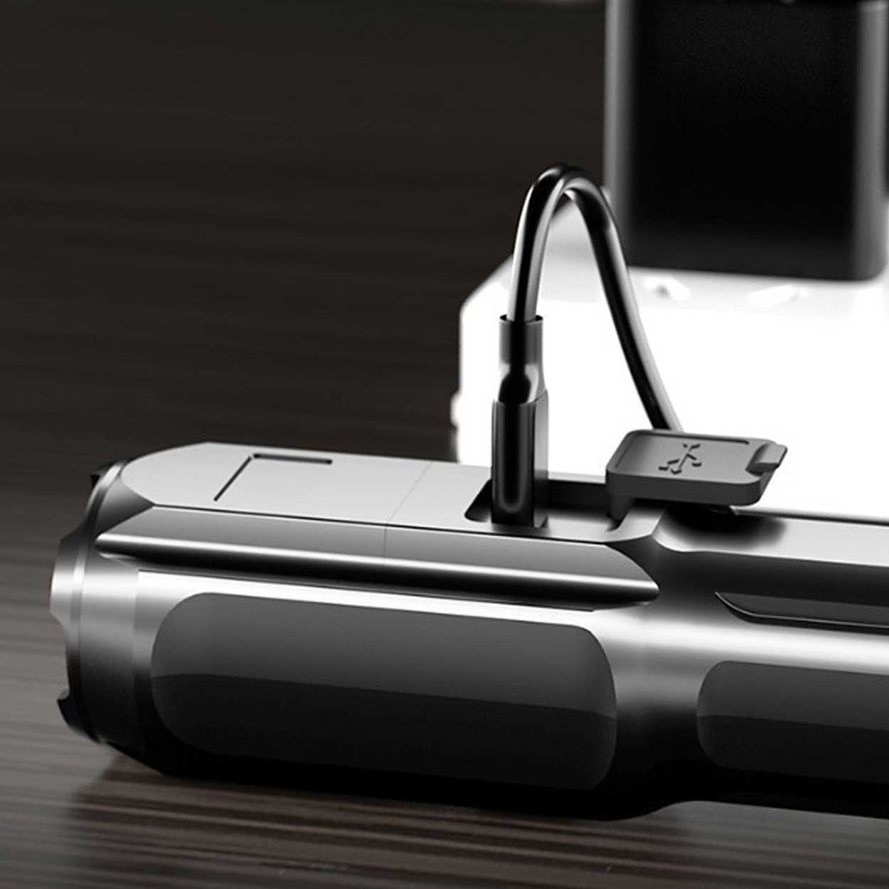Liten, lätt och kompakt uppladdningsbar led-ficklampa som är enkel att använda. Perfekt vid krissituationer, strömavbrott eller för dig som är ute i mörkret. Lampan är vattentät och kraftfull med lång batteritid samt har 3 inbyggda lägen; Stark, medium och SOS.