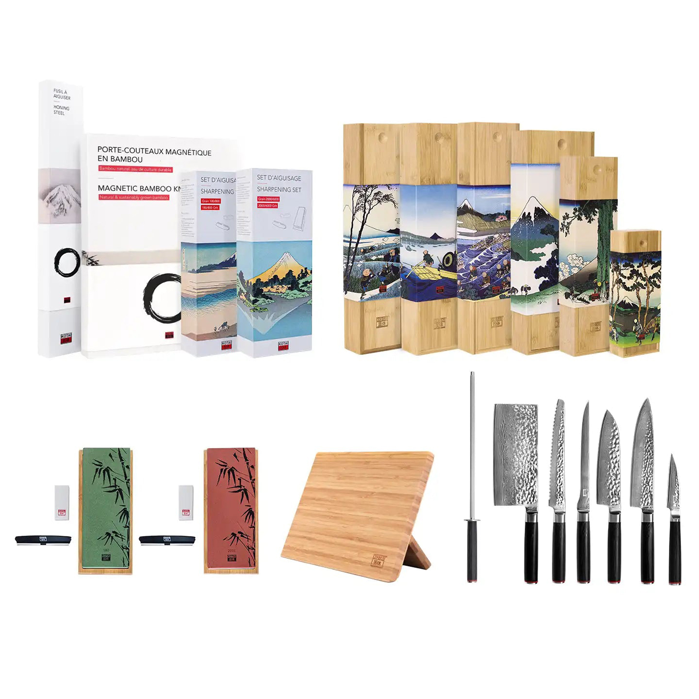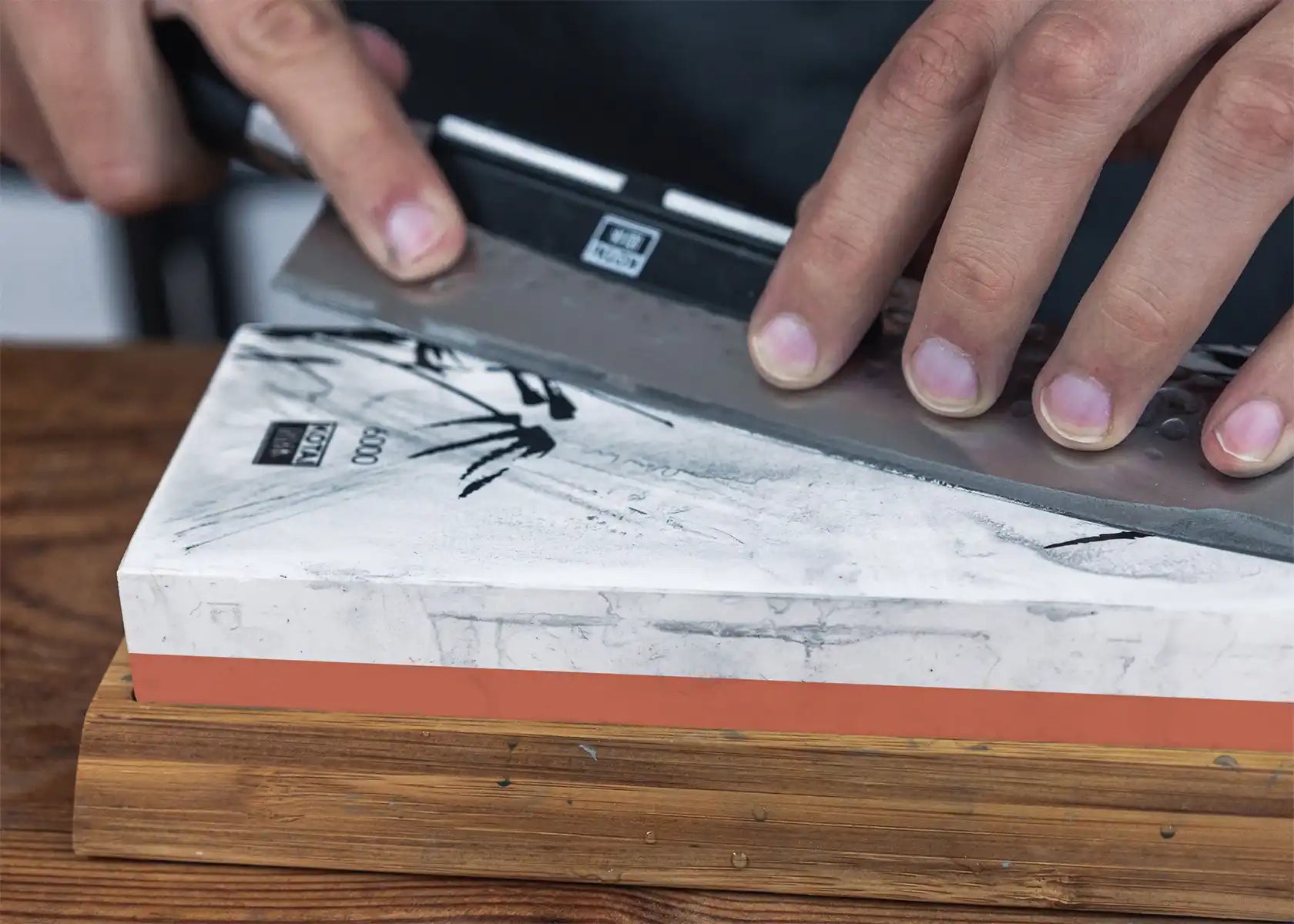 - Slipset med dubbelsidig slipsten i kornstorlek 2000/6000, halkfri bas i bambu, flattening stone och 15 graders vinkelguide