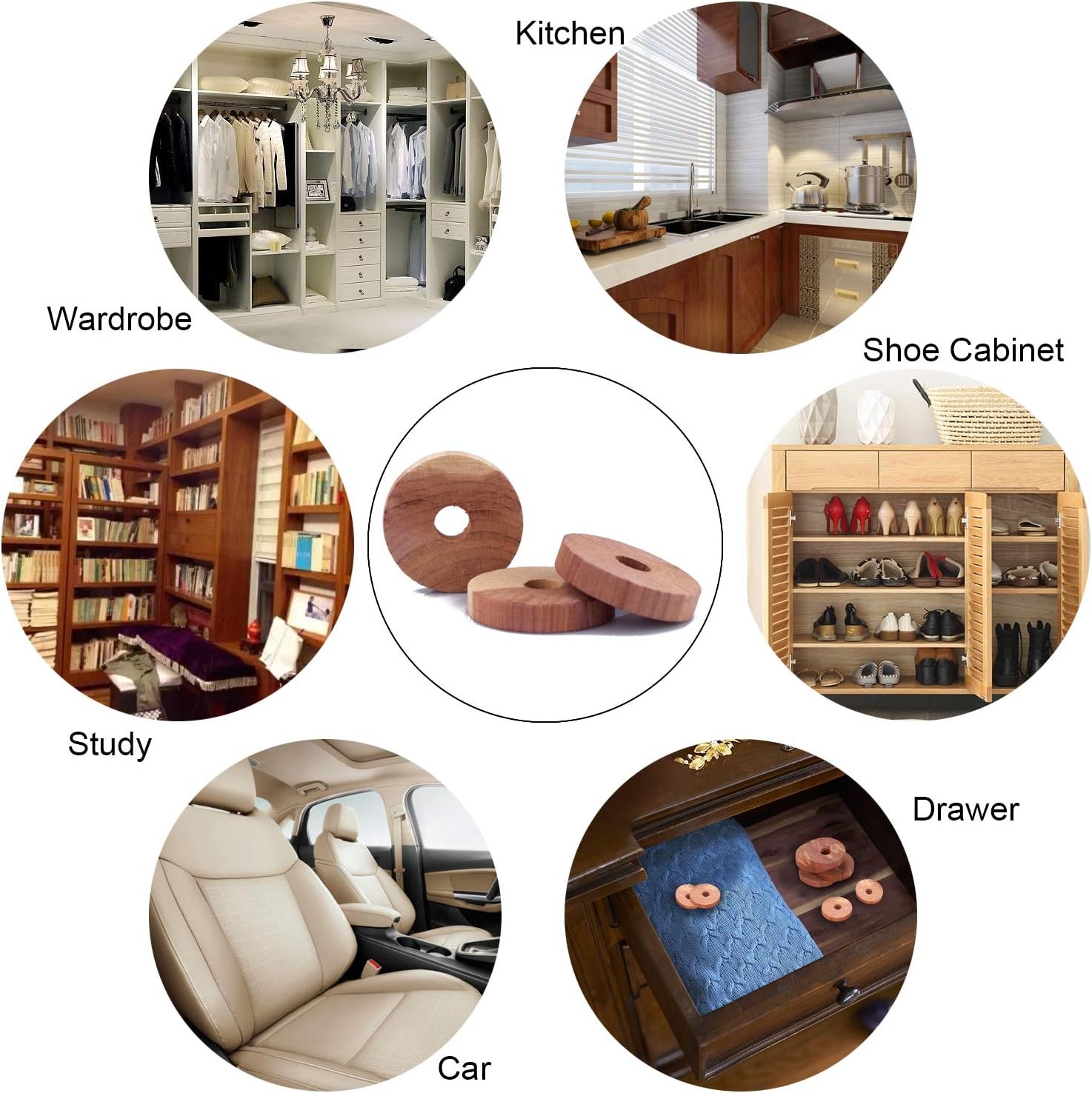 Cederträ har en lång livslängd. Om doften minskar kan du försiktigt slipa ringarna med ett fint sandpapper för att återställa och förstärka den. För att förstärka doften ytterligare kan du droppa lite eterisk olja från röd ceder på dem.