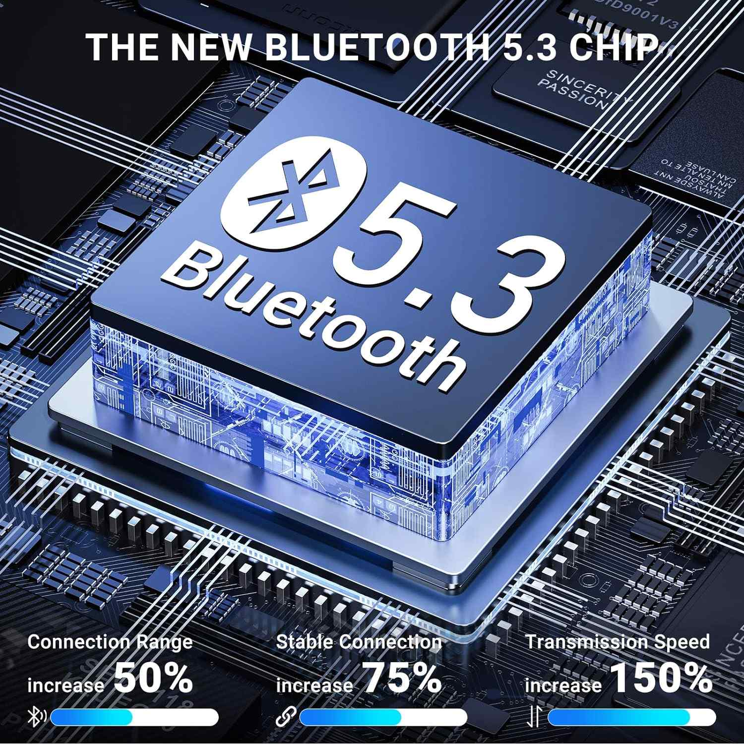 2025 C4U-X500 NY BLUETOOTH 5.3 TEKNOLOGI: Trådlösa hörlurar med inbyggd Bluetooth har utrustats med den senaste versionen av Bluetooth 5.3-chippet, vilket innebär bättre chip och teknologi. De