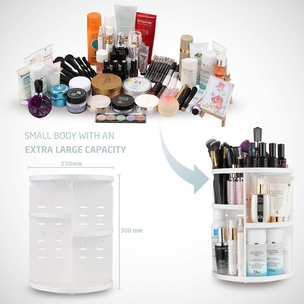 Organisera och håll koll på alla dina skönhetsprodukter med en smidig och stilfull makeup-organizer som kan snurra runt 360 grader. Denna praktiska skönhetsförvaring kan rymma upp till 80 kosmetiska produkter.