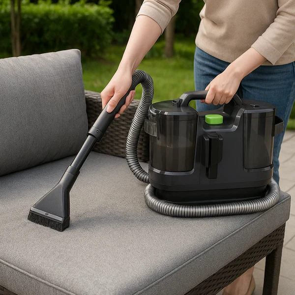 Ge dina möbler och mattor nytt liv med denna multifunktionella våtdammsugare som rengör på djupet med hjälp av två separata vattentankar. Smuts avlägsnas effektivt medan rent vatten sprutas in för en fräsch och jämn rengöring. Den kompakta designen gör den enkel att använda i hela hemmet och setet levereras med flera munstycken för olika ytor.