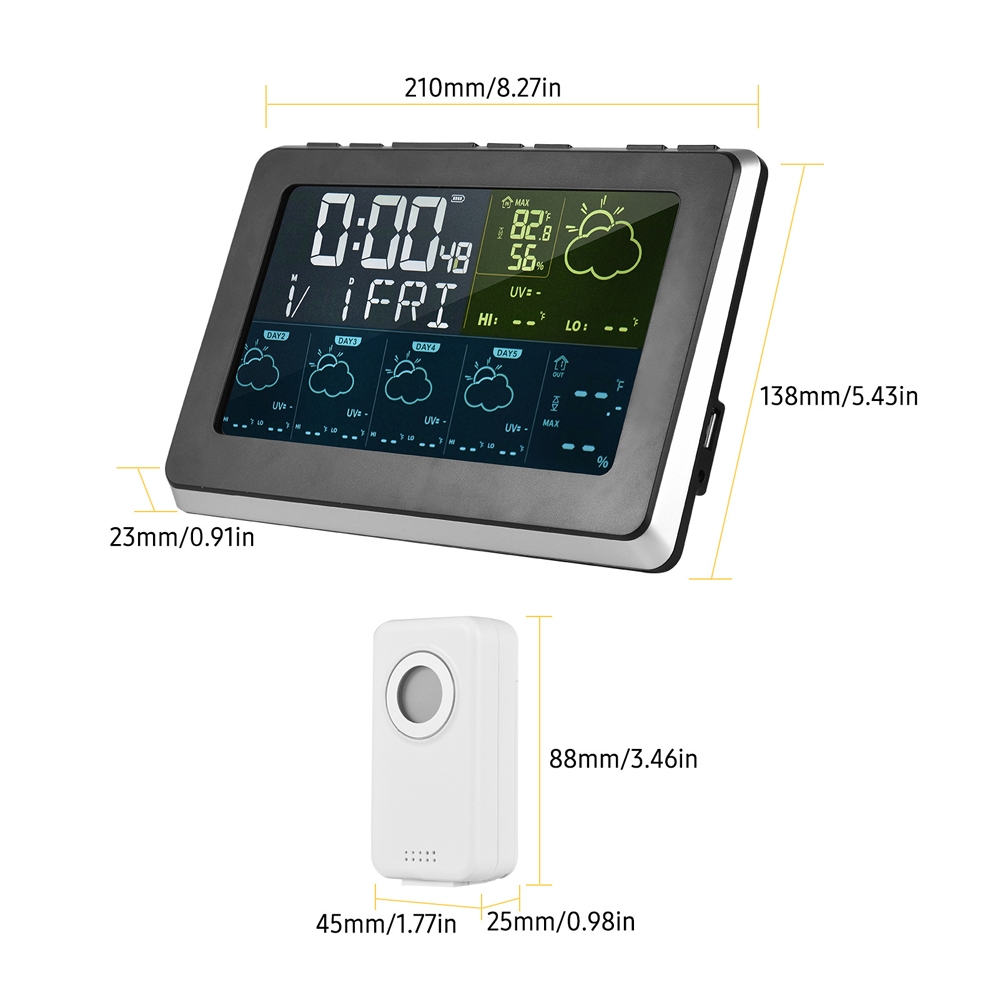 RSH Wifi Väderstation är mer än bara en klocka. Med sin stora 7,5" färg LCD-skärm erbjuder den en tydlig 5-dagars väderprognos samt visar inomhus och utomhus temperatur och fuktighet. Allt kan enkelt övervakas via den praktiska Tuya & Smartlife APP. Den har även en inbyggd komfortindikator och möjligheten att ställa in temperaturlarm via appen. Perfekt för alla som vill ha full koll på både tid och väder!